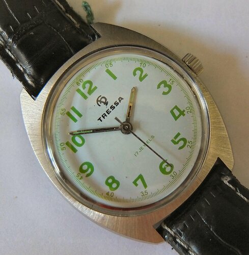 Van dit caliber zijn er in India, in licentie, ongelofelijke hoeveelheden geproduceerd. Ook al omdat bij de eufemistisch gezegd, ‘refurbished’ horloges met merken als Oris, Tressa, Titus en Sandoz vrijwel altijd standaard dat zelfde (nagemaakte of uit oude onderdelen samengestelde) uurwerk werd gebruikt: de ST/FHF 96! Overigens ook vaak in het zelfde type kastje (van RVS dat dan weer wel), met vrijwel dezelfde wijzersetjes en dezelfde generieke kroontjes. Alleen de wijzerplaten verschilden en die vind je dan ook in een verbijsterende variëteit, vrijwel nooit een origineel merkontwerp, soms hilarisch slecht ‘geschilderd’ en dus vrijwel allemaal hartstikke vals. En als die dingen nu nog goed liepen, dan had je nog wat, maar (ik spreek uit ervaring) dat was meestal ook niet zo.