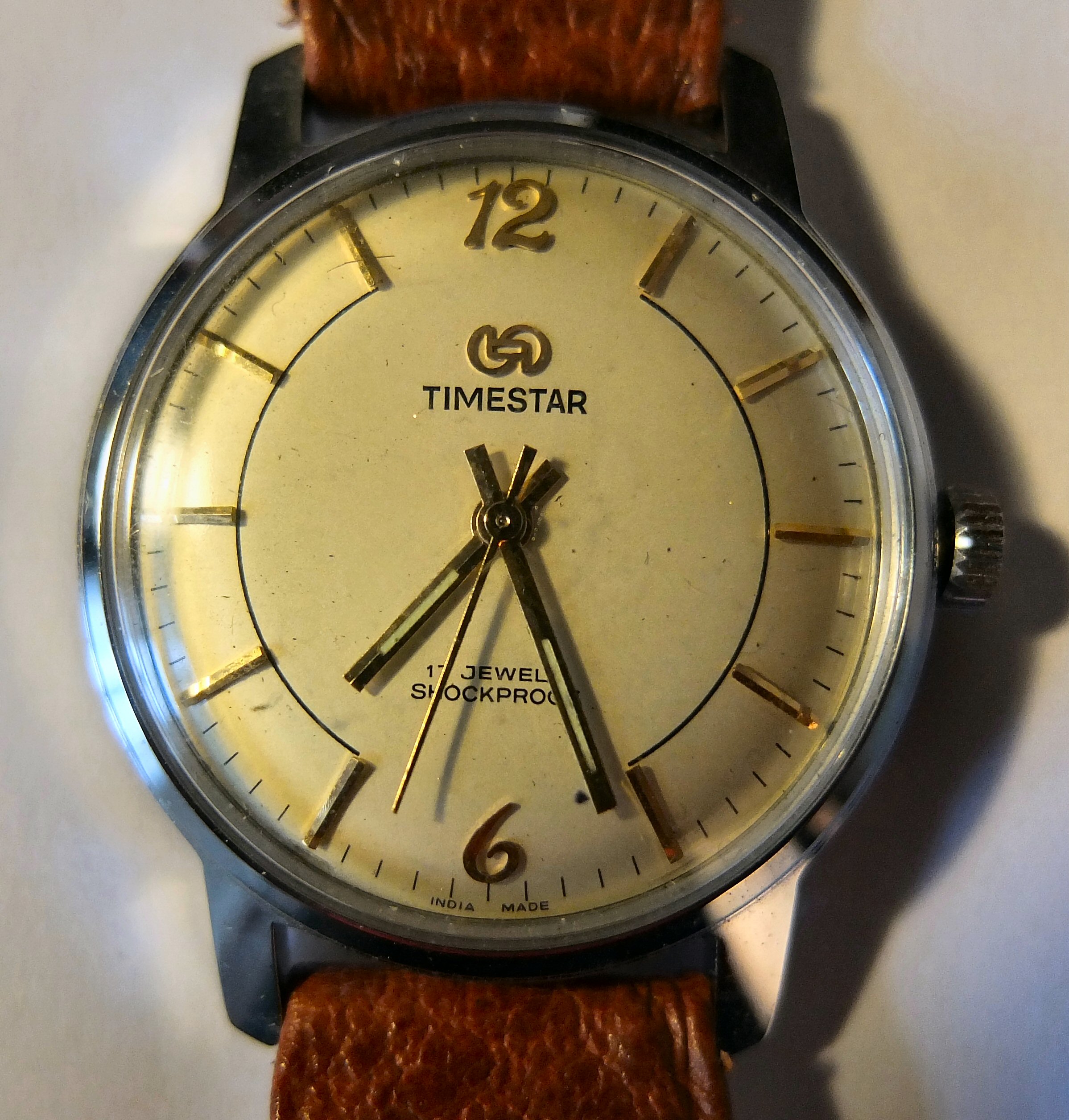 Daarnaast nog, ook uit India, een 5-tal Timestar horloges. Ook een ‘inheems’ Indiaas merk, aangedreven door een in licentie vervaardigd oorspronkelijk Frans Lorsa P62 werkje. Verrassend genoeg zijn die Timestars van veel betere kwaliteit, ook qua afwerking, ze lopen na bijna 10 jaar alle 5 nog steeds redelijk op tijd.