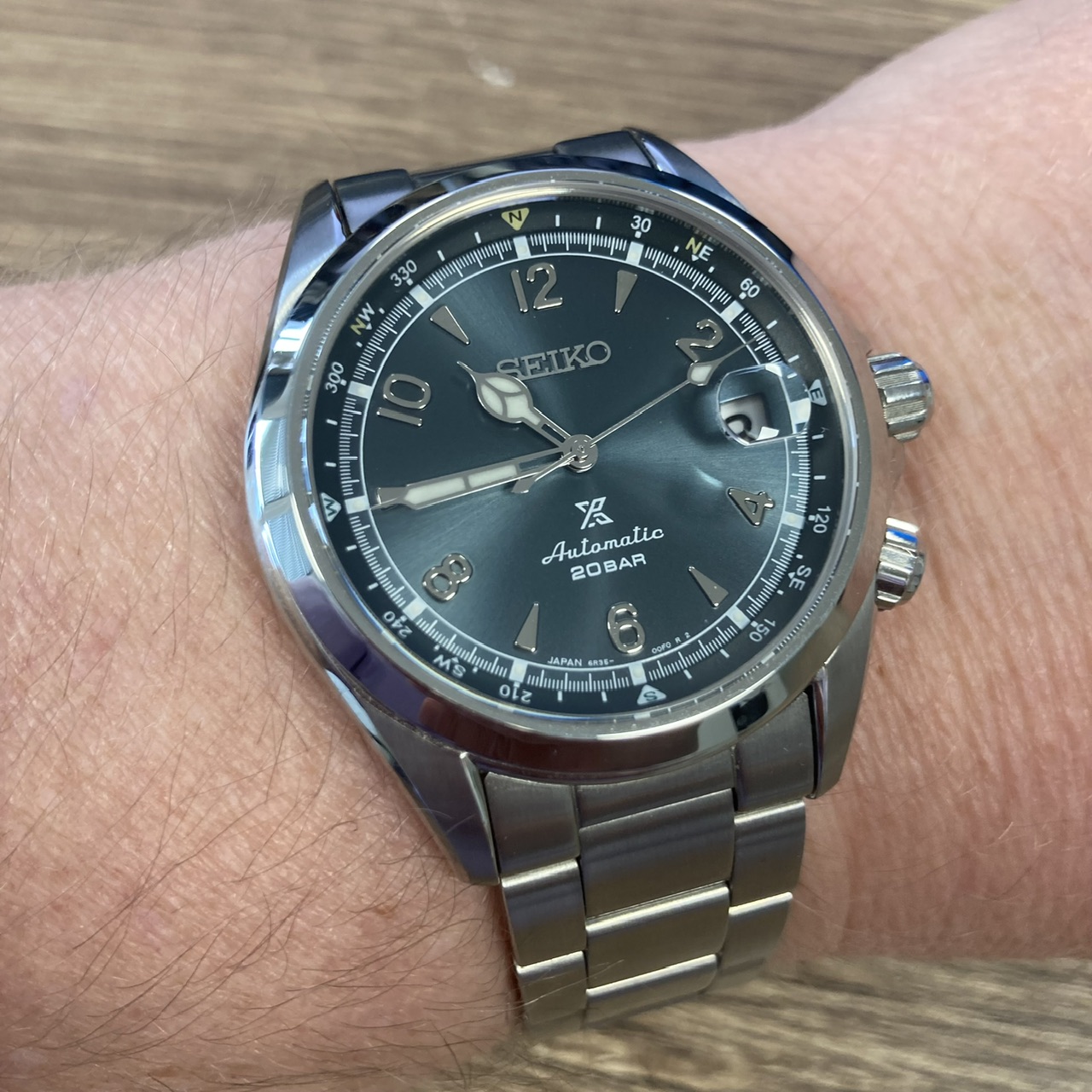 Het is een uncle Seiko geworden. Pastte niet met bijgeleverde spring bars, iets dunnere uit de voorraad gepakt. Op foto 2 zie je hetzelfde probleem met het gat bij de sluiting als dat de originele band heeft. Daarnaast voel je iets van stroefheid in de schakels. Al met al een prachtige band maar niet van hogere kwaliteit dan de matige band van Seiko zelf. Mijn volgende stap wordt een duurder horloge met betere band