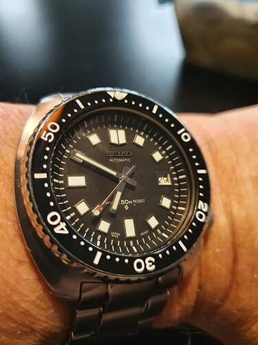 Mag ik vragen waar je die dial vandaan hebt? Dat is volgens mij een green turtle dial en die modellen gaan aardig over de kop. Echt een mooie dial!