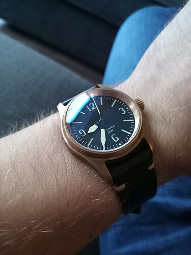 Zo’n bronzen pilot in 36mm is eigenlijk best prettig.