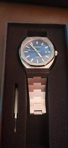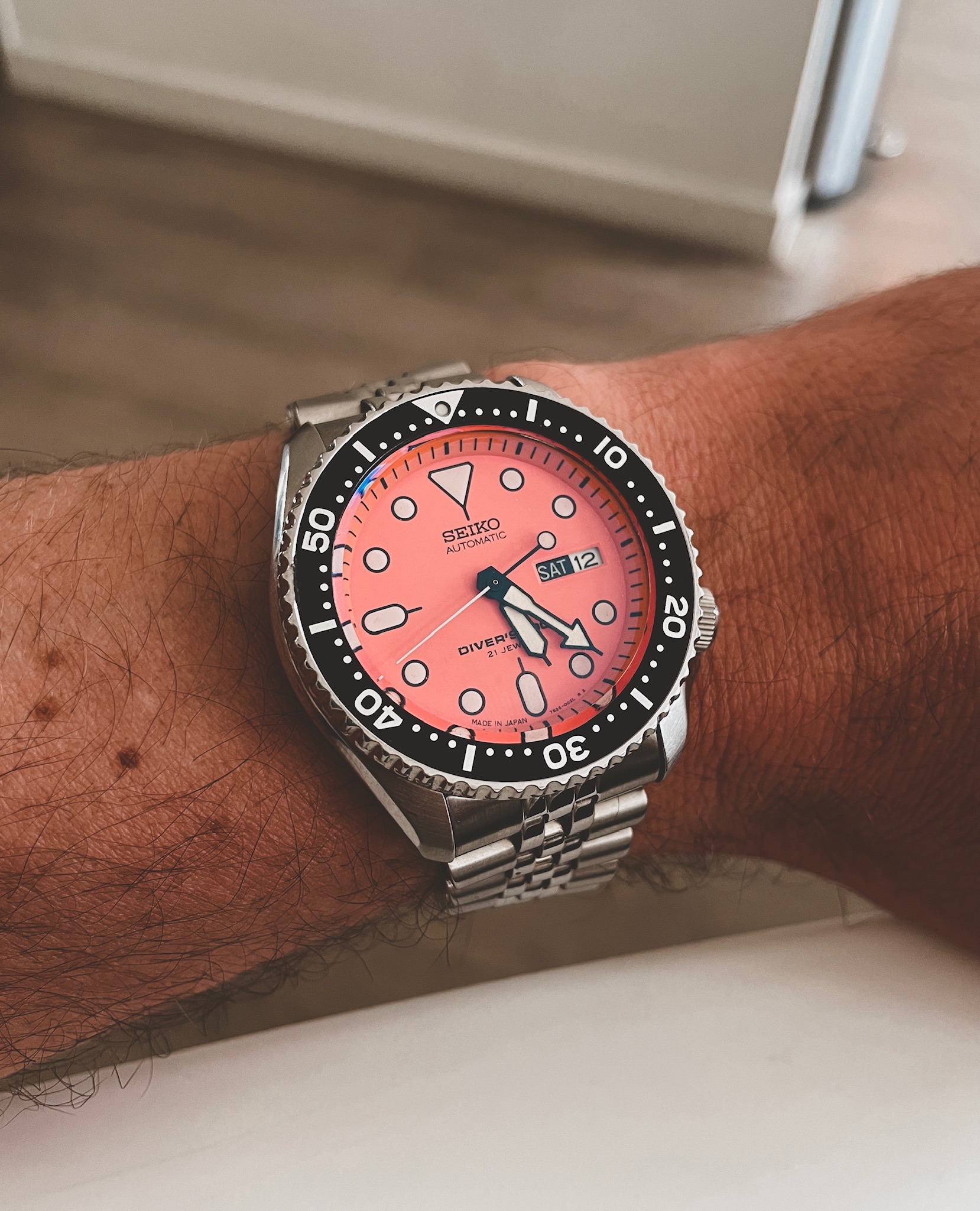 Bandjes wisselen is eigenlijk niet echt modden meer hè? Er licht in ieder geval al drie dagen bij de douane een curved waffle strap te wachten. Het is een klein detail, maar die curve maakt het denk ik net iets mooier dan de waffle strap die er nu op zit.
