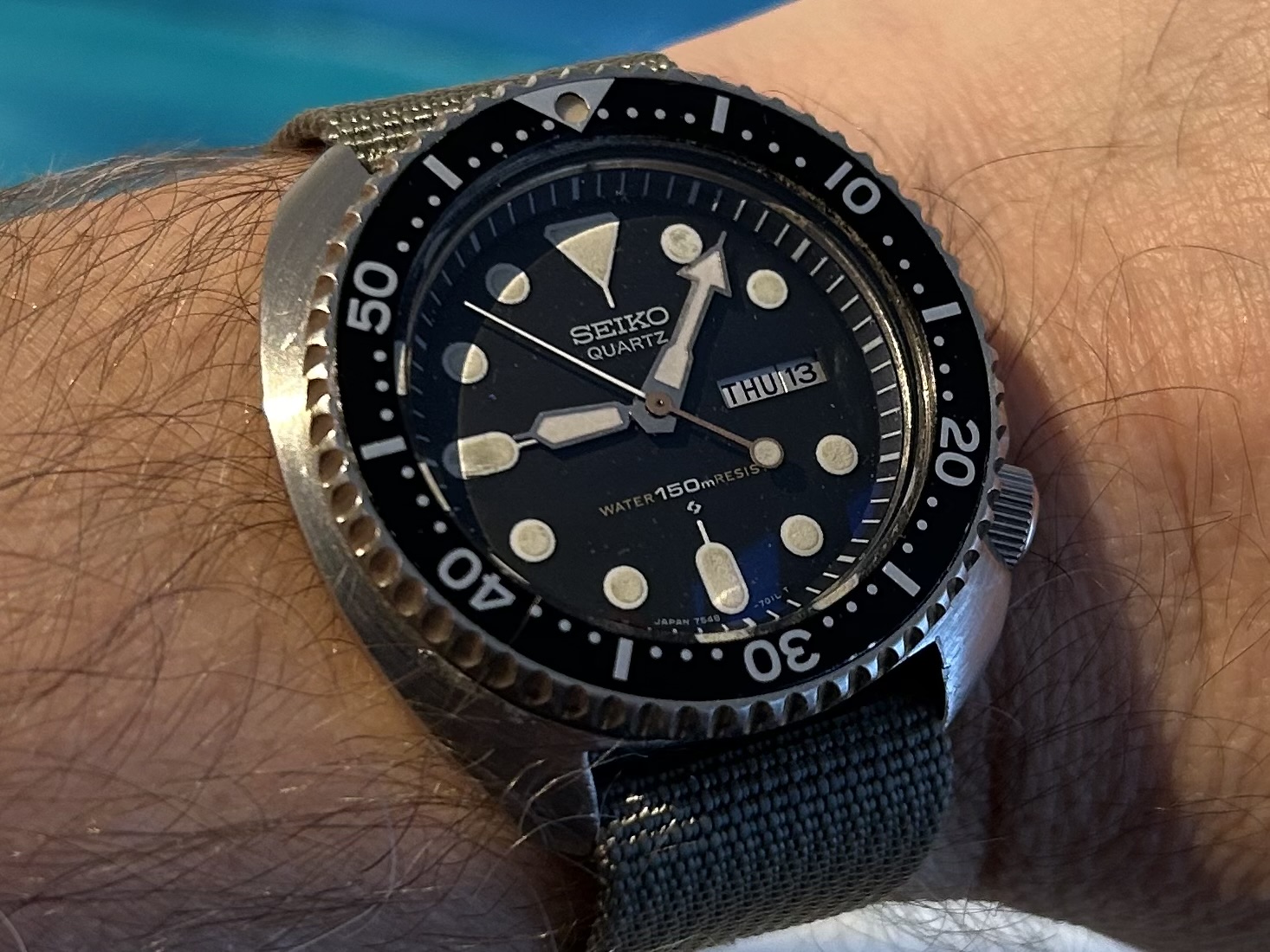 Een fake is het niet, want het horloge pretendeert geen Seiko te zijn. Ik noem het een mod, maar met genoeg Seiko-dna om gewaardeerd te kunnen worden door Seiko-fans. Het is de afgelopen jaren bovendien mijn vakantiehorloge geweest, dat meeging op zeilvakanties in Kroatië en Nederland en waarmee ik ook zwom. ![]()
