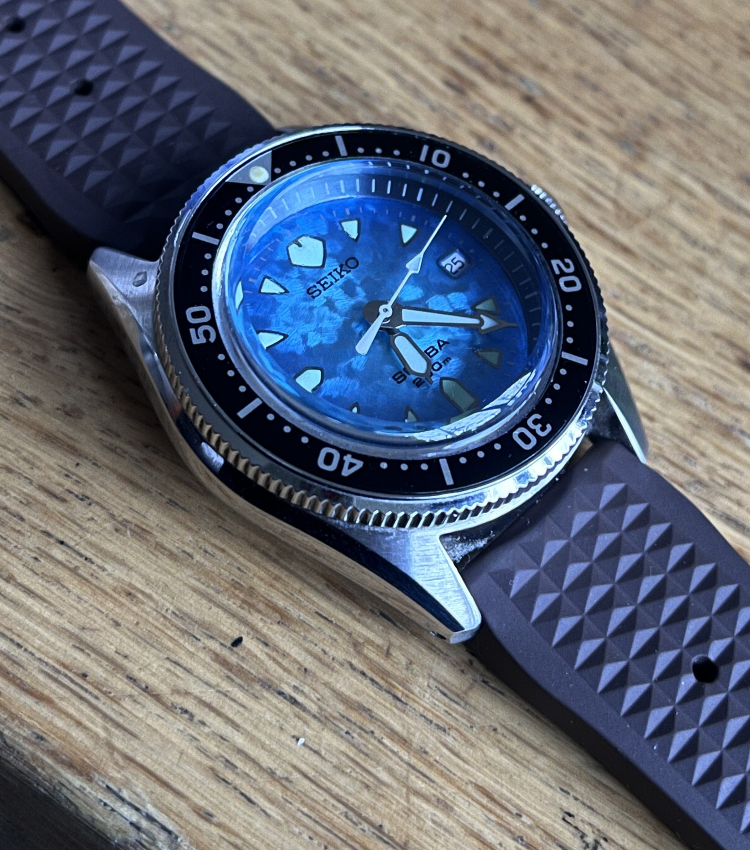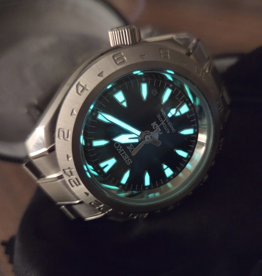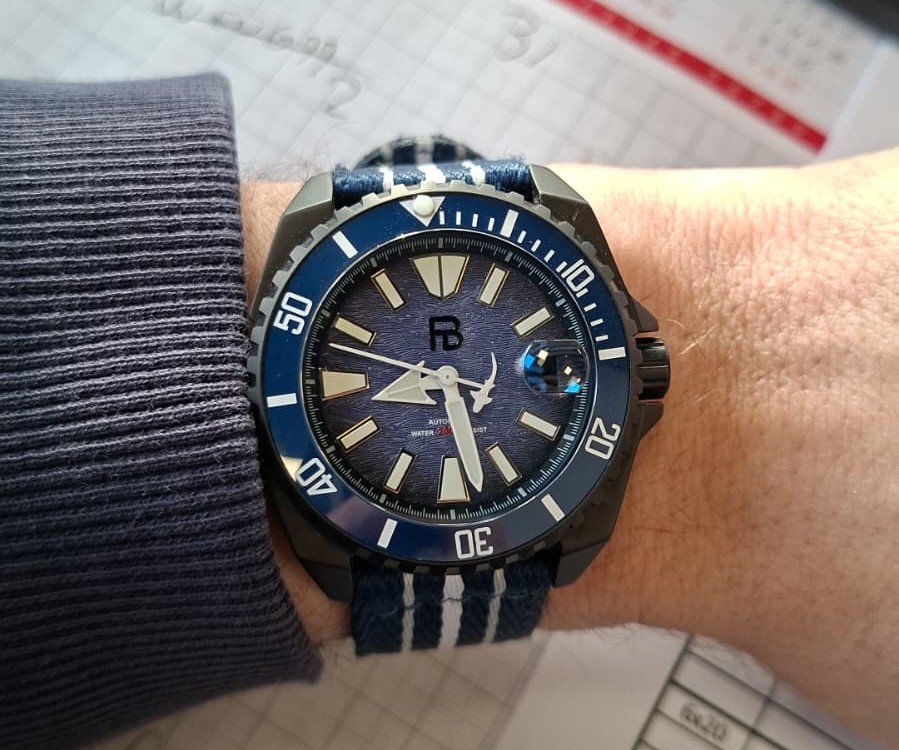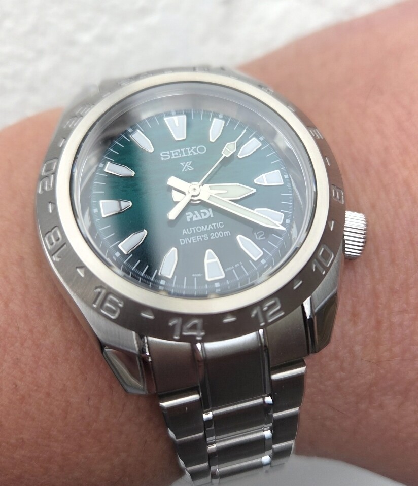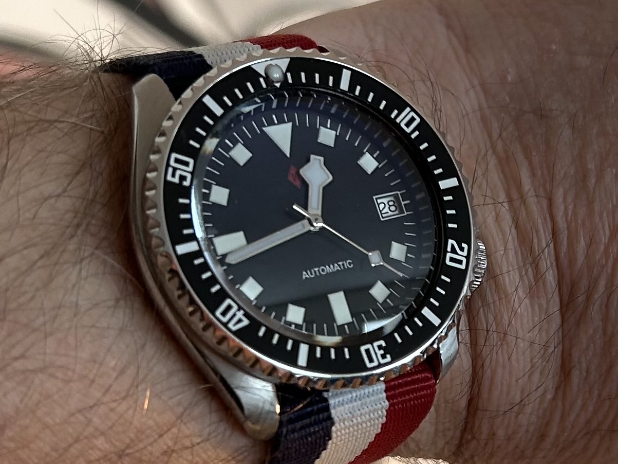 Ik vind het resultaat wat saai, en toch wel lastig dat er geen enkele uur-markering aanwezig is. Zodra mijn GMT kast en 12-uur bezel toekomt ga ik proberen of dat beter is.