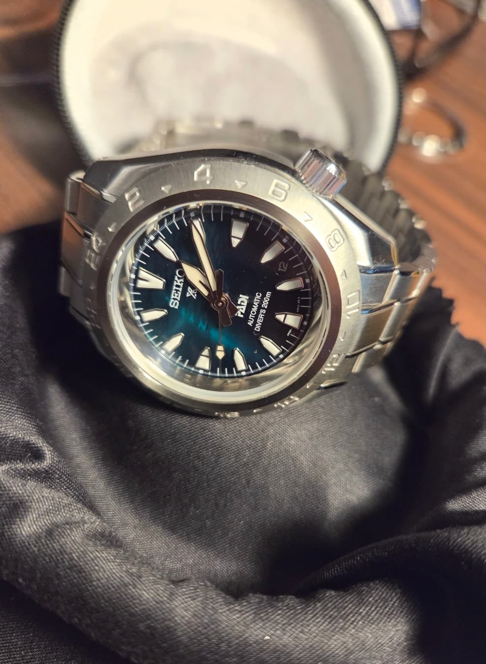 Laat hem toch even zien, ondanks dat er een gmt bezel op zit terwijl het geen gmt is, en daar vast en zeker commentaar op komt.