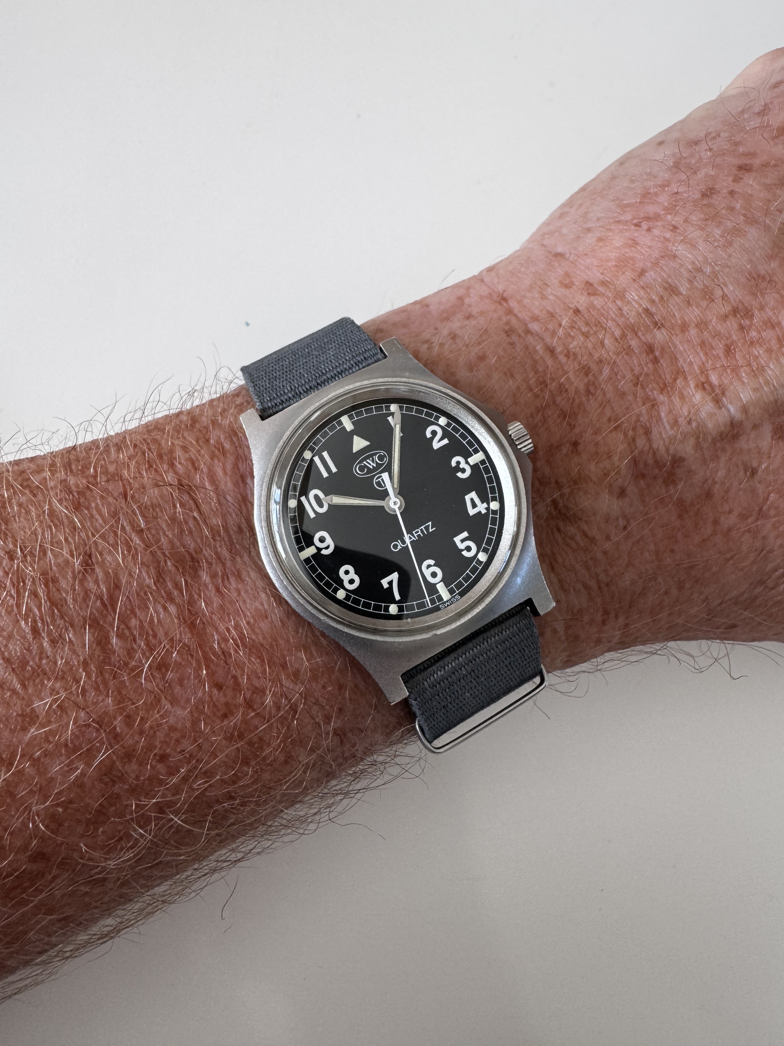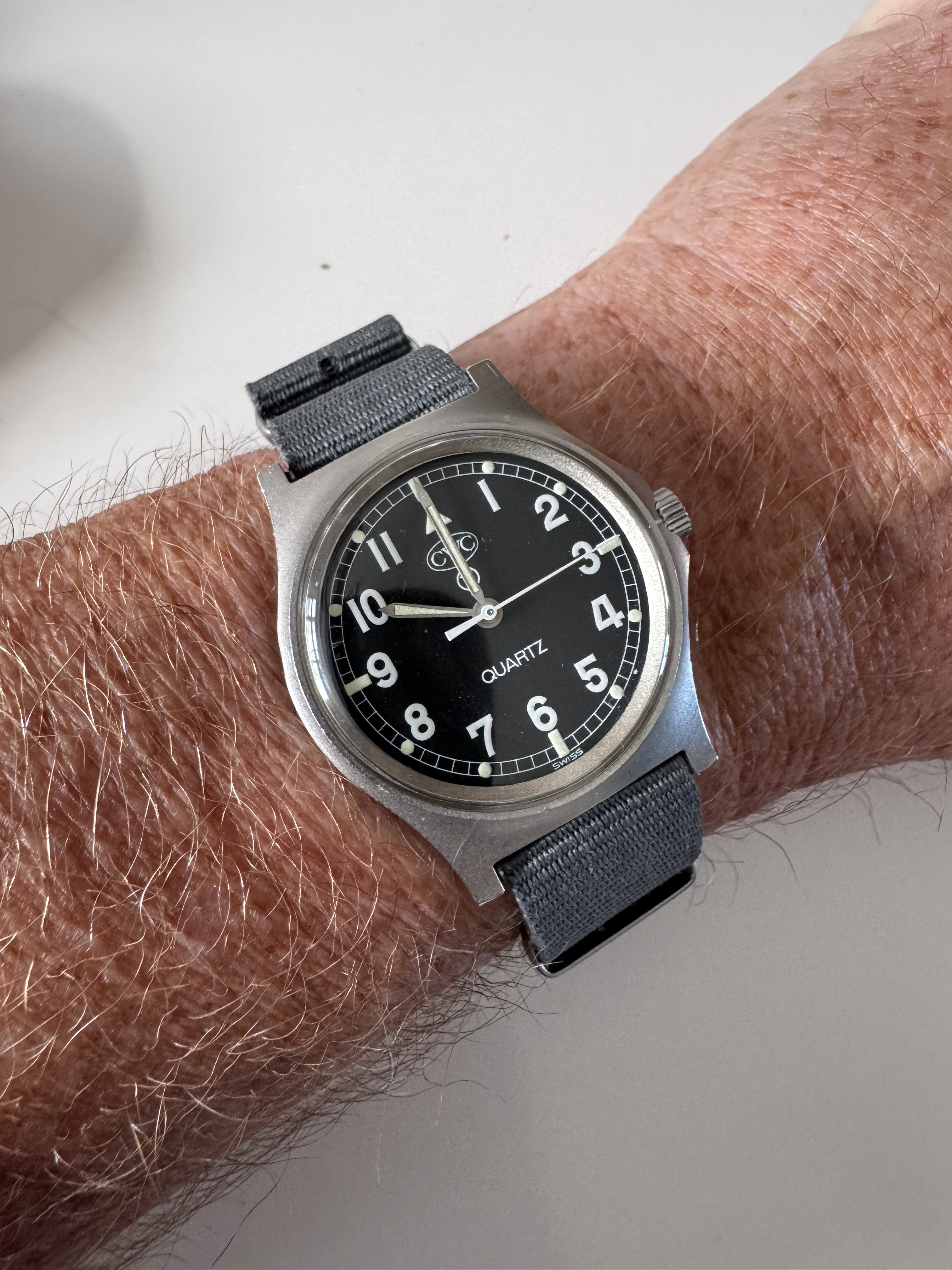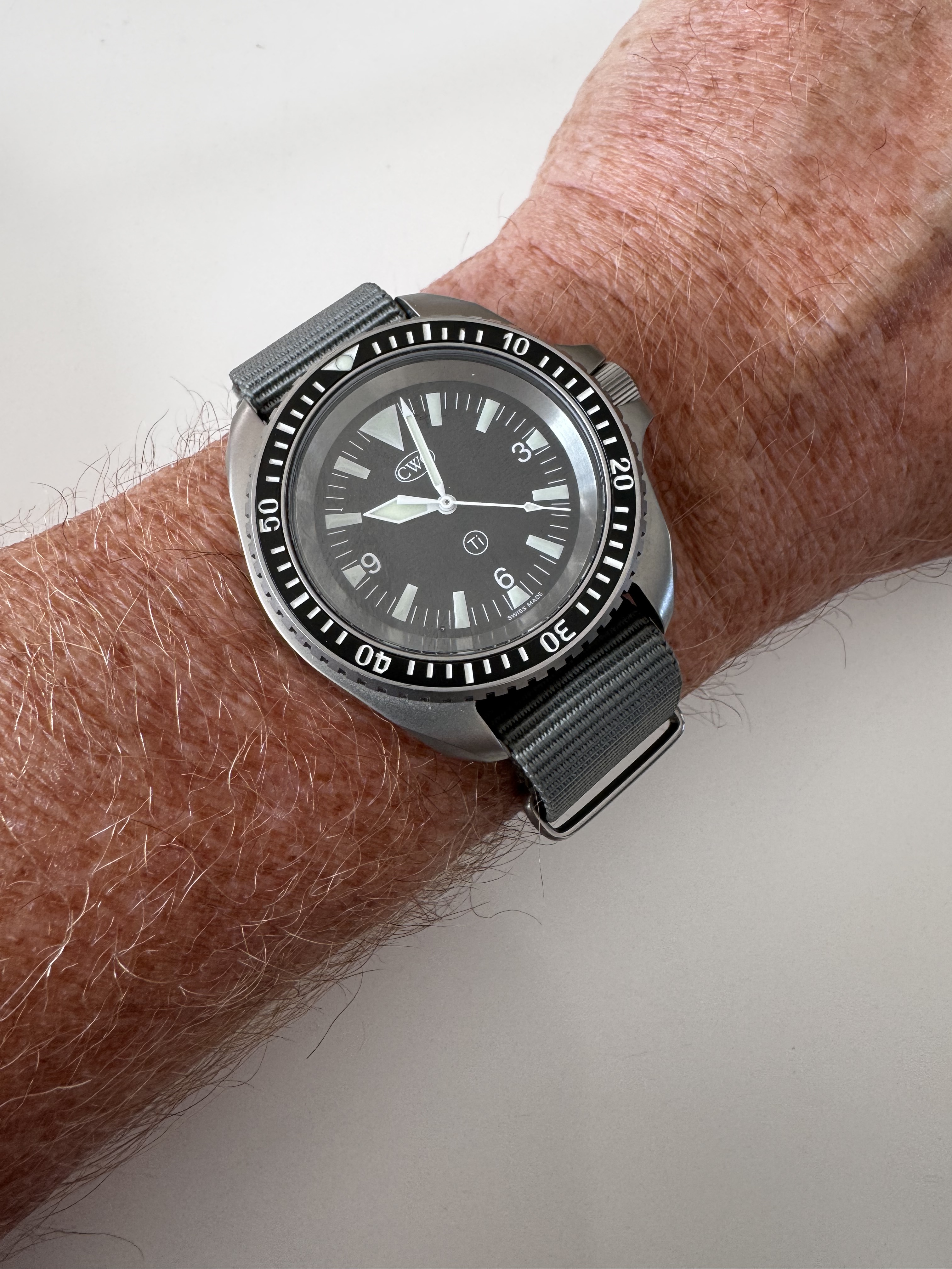 Even een vergelijking met de positie van het horloge op de nato. Ik zie dat @Jooost ook de onderste lug vrijwel tegen de onderste metalen band van de nato draagt. Resultaat is dat het horloge iets minder lomp om de pols draagt ![]()