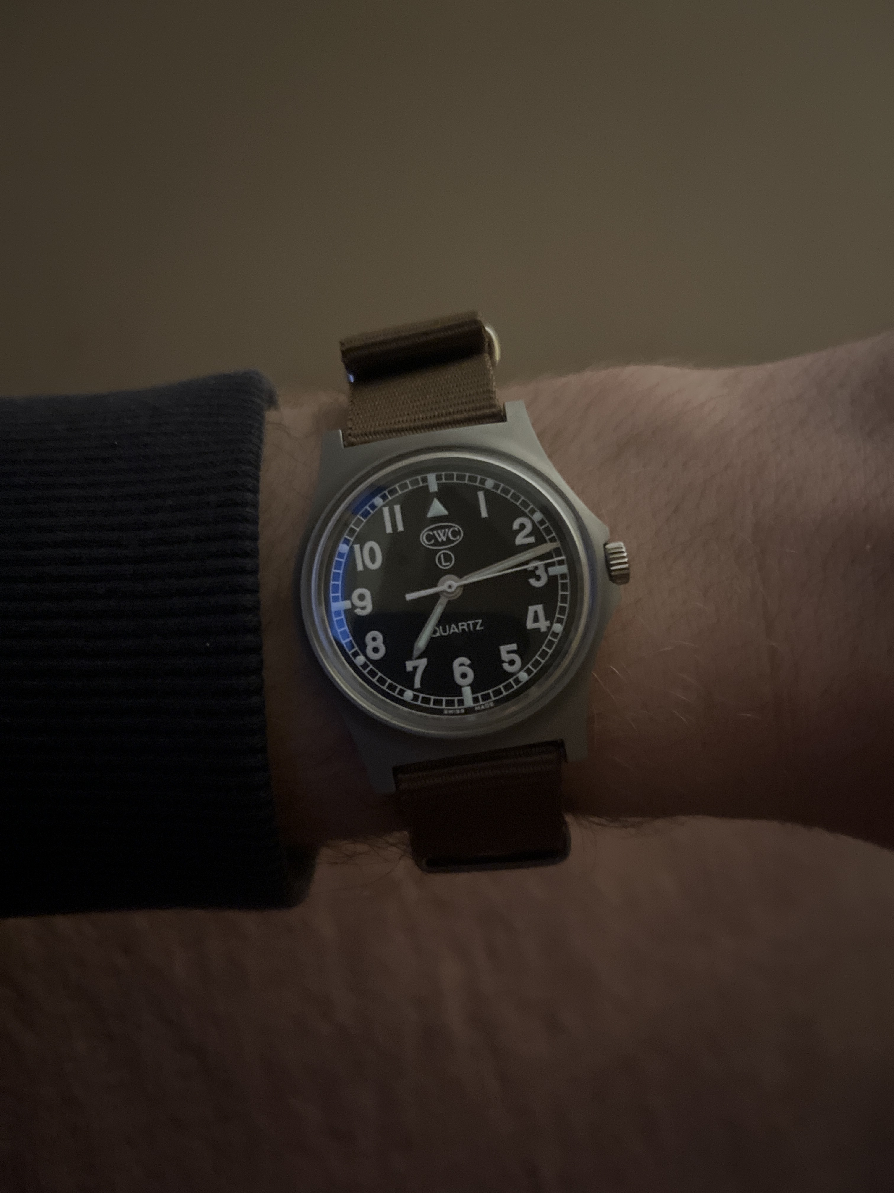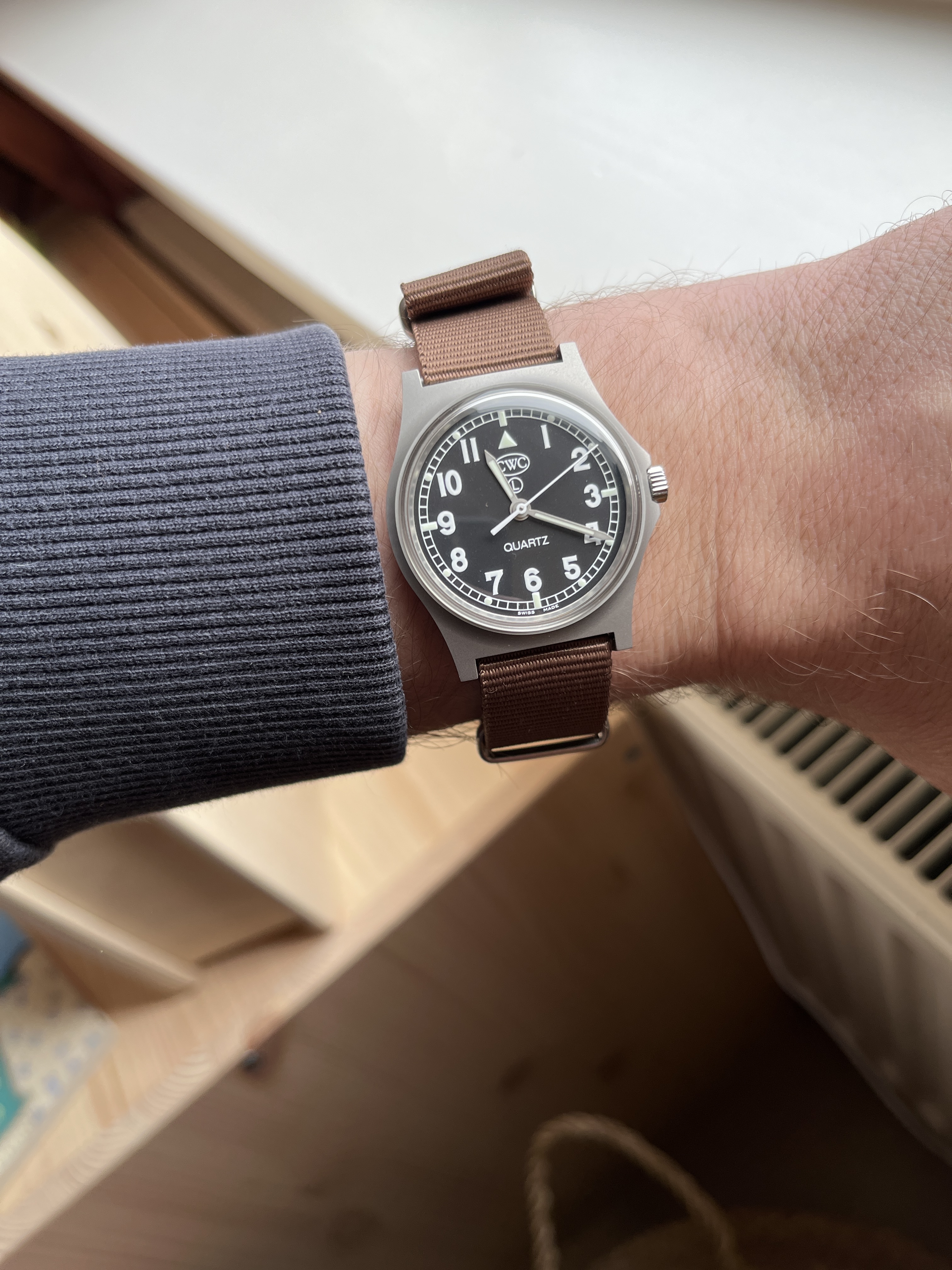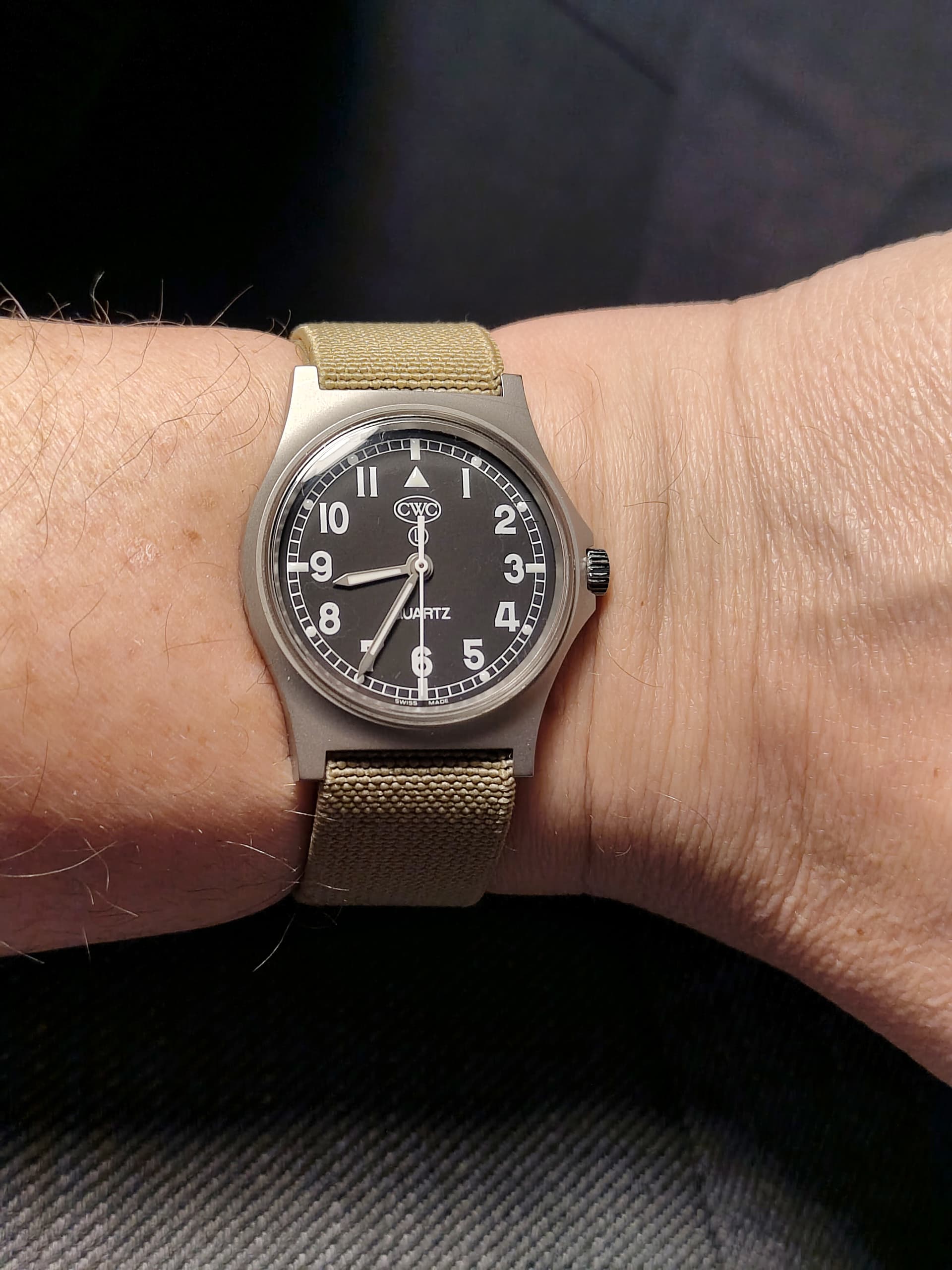 Even cheaten hier, foto van mijn cwc t20 (dus de w10 quartz) maar zoals je mss opmerkt staat die niet op het juiste uur. Dat is hopelijk gewoon omdat er een nieuwe batterij in moet (blijft wel vreemd want volgens het garantie kaartje is het horloge van 10/25, hier op het forum gekocht en de batterij zou toch 3 jaar moeten meegaan?
