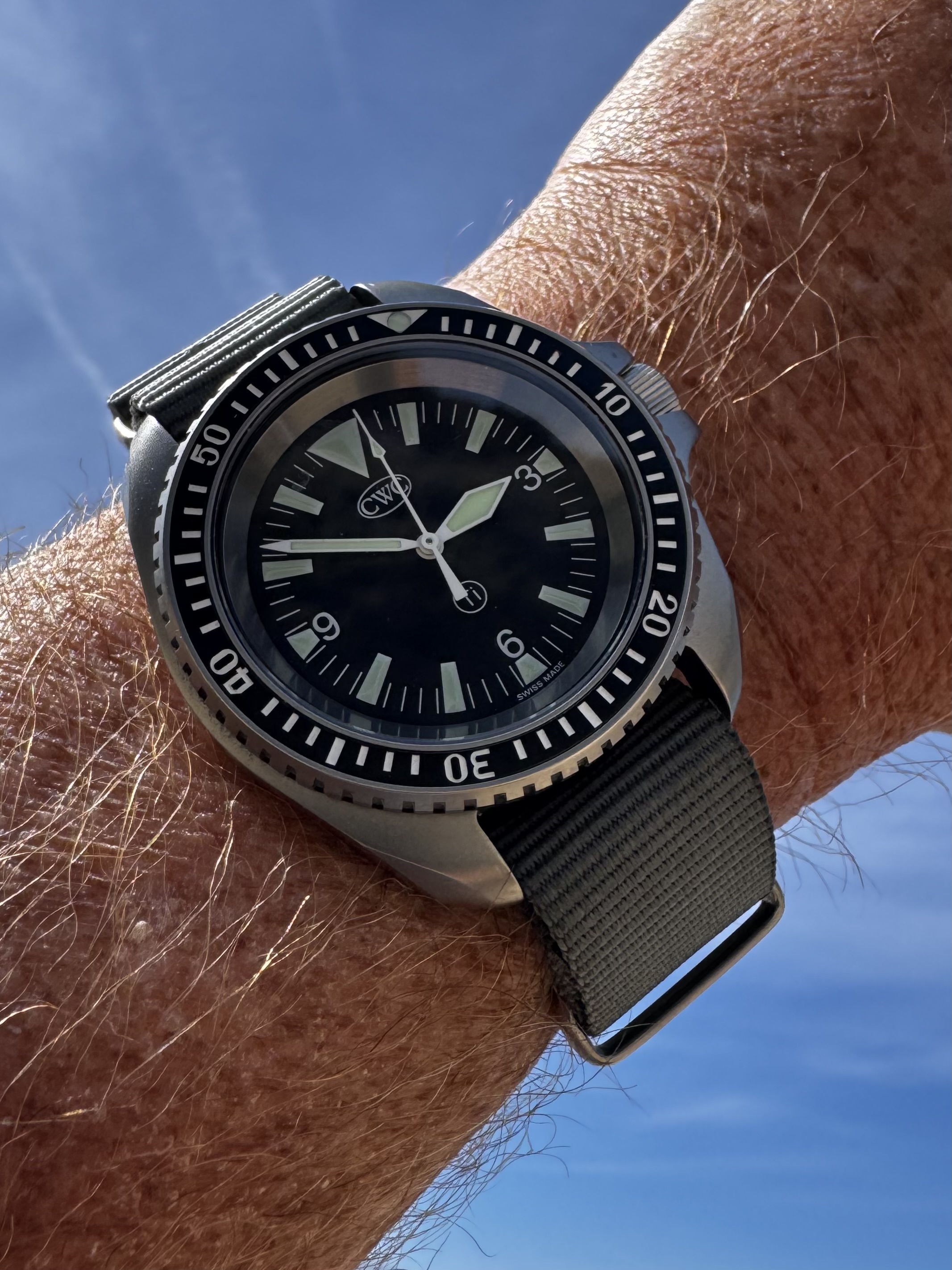 De W10 heeft een ander model kast en geen quartz op de wijzerplaat , kan alleen lastig inschatten hoe de grote op de pols valt