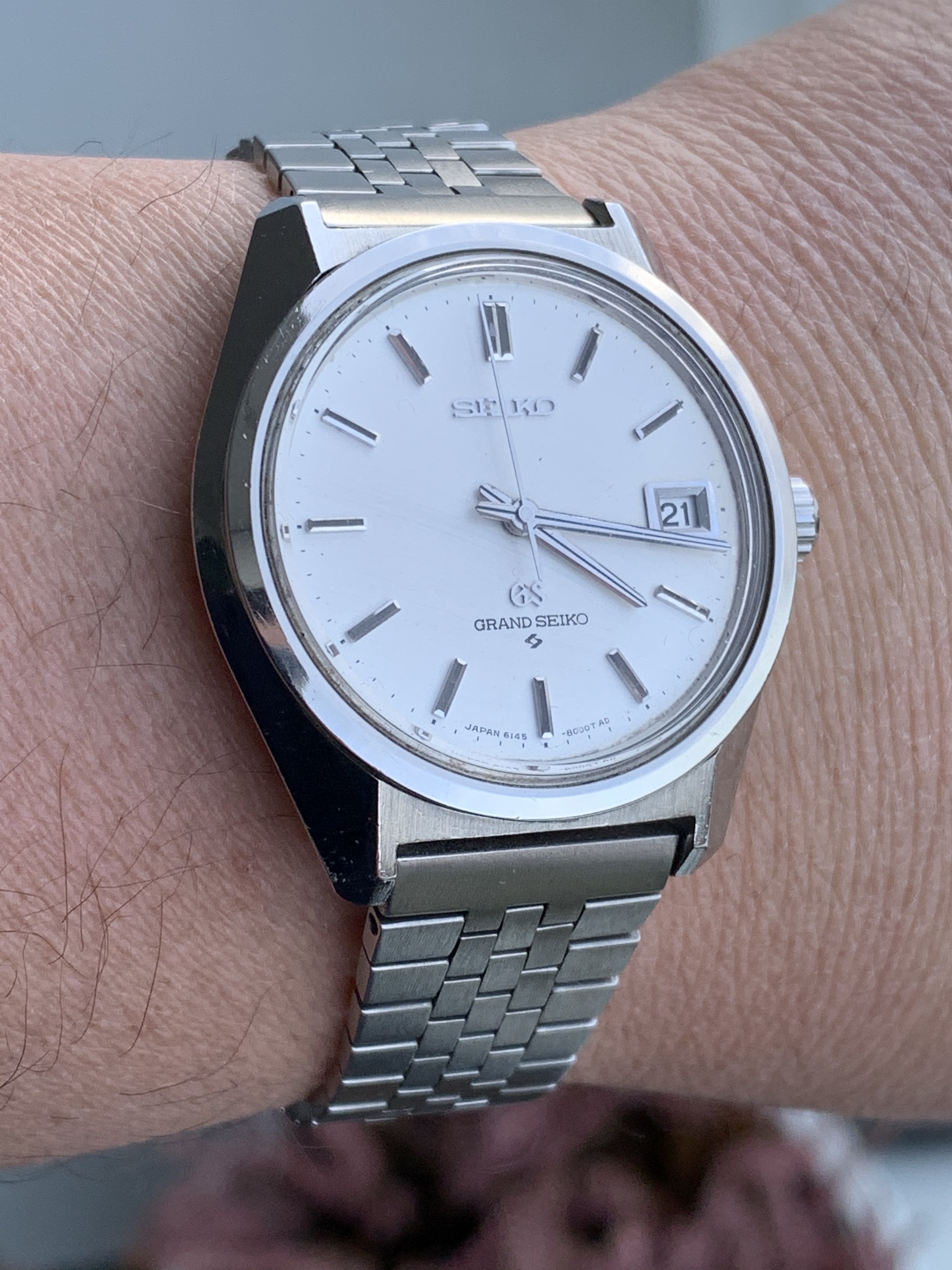 Op de wijzerplaat van de 6146-8010 is het een goudkleurig printje. Niet veel bijzonders, maa samen met het gefacetteerde glas (dit was de eerste GS die dat had) en de HSS kast - die dus een bijzonder design heeft - was dit een soort ‘special edition’ van de 6146. Hij is ongeveer een jaar in productie geweest, en daarbij niet in grote aantallen, dus redelijk zeldzaam.