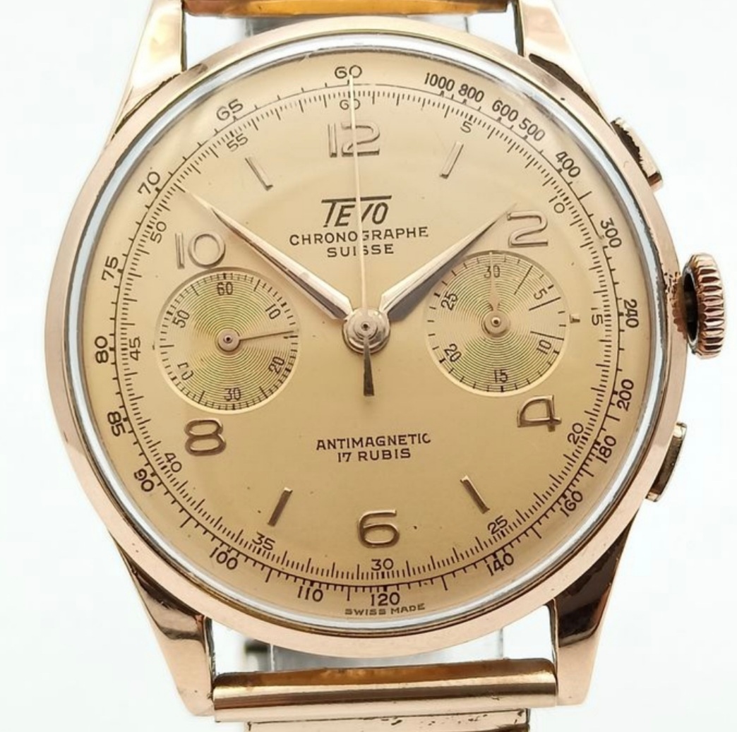 Speciaal voor deze post een account aangemaakt. Bovenstaande horloge is niet de mijne maar die ik heb geërfd. Ik kan er maar weinig over vinden online, behalve 1 advertentie met een exact zelfde exemplaar, zie foto. Kan iemand mij iets vertellen over dit horloge en het merk “Tevo”? Ik hoor het graag en alvast bedankt.