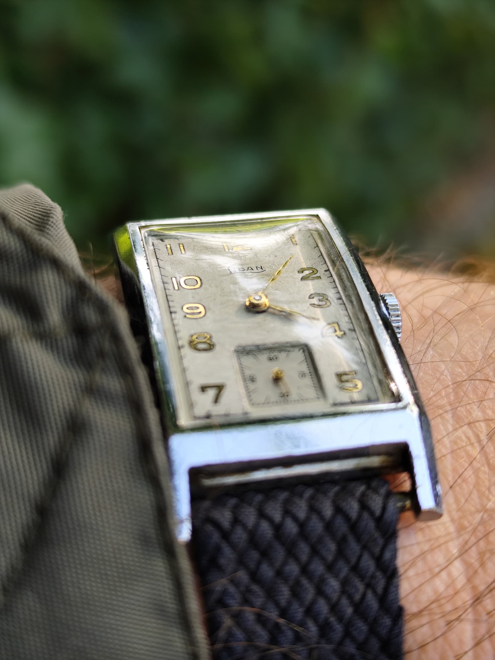 Het is inderdaad, zelfs voor vintage, een klein model. Maar geweldig dat 3 uur buigen en weer terugbuigen vd spiraal deze weer in werkende staat heeft gebracht. Hij verdient het weer gedragen te worden, maar wellicht om een ranke (dames)pols.