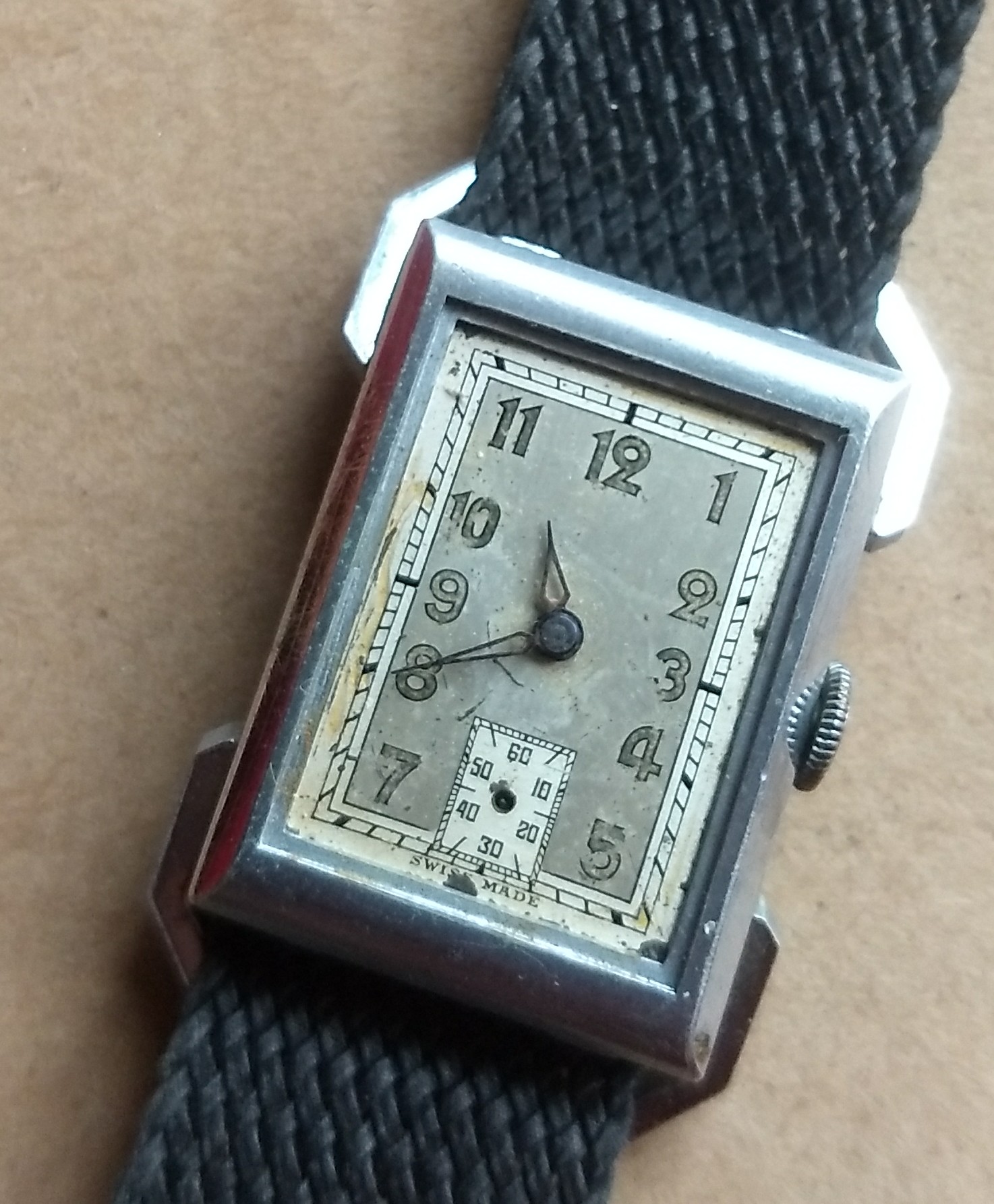 coole tank met nog het origineel facet geslepen mineraal glas erop en best groot met zijn 26mm excl kroon bij 36mm excl lugs voor begin tot midden 1930s