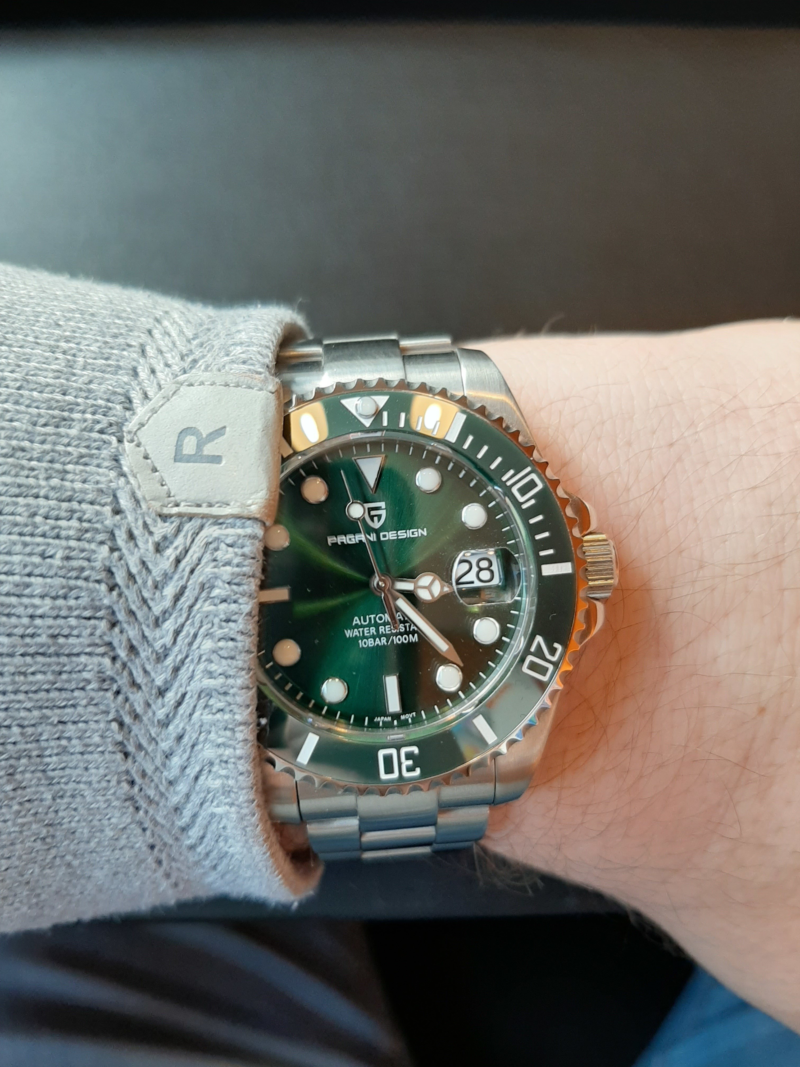 Die flieger is van Parnis. En die blauwe ‘duiker’ is van Pagani Design. Er zit heel veel troep tussen die Chinese horloges, maar zo af en toe zit er gewoon iets moois tussen, met goeie specs. En gaat het een keer stuk? Ach, het heeft 5 tientjes gekost. Haha!