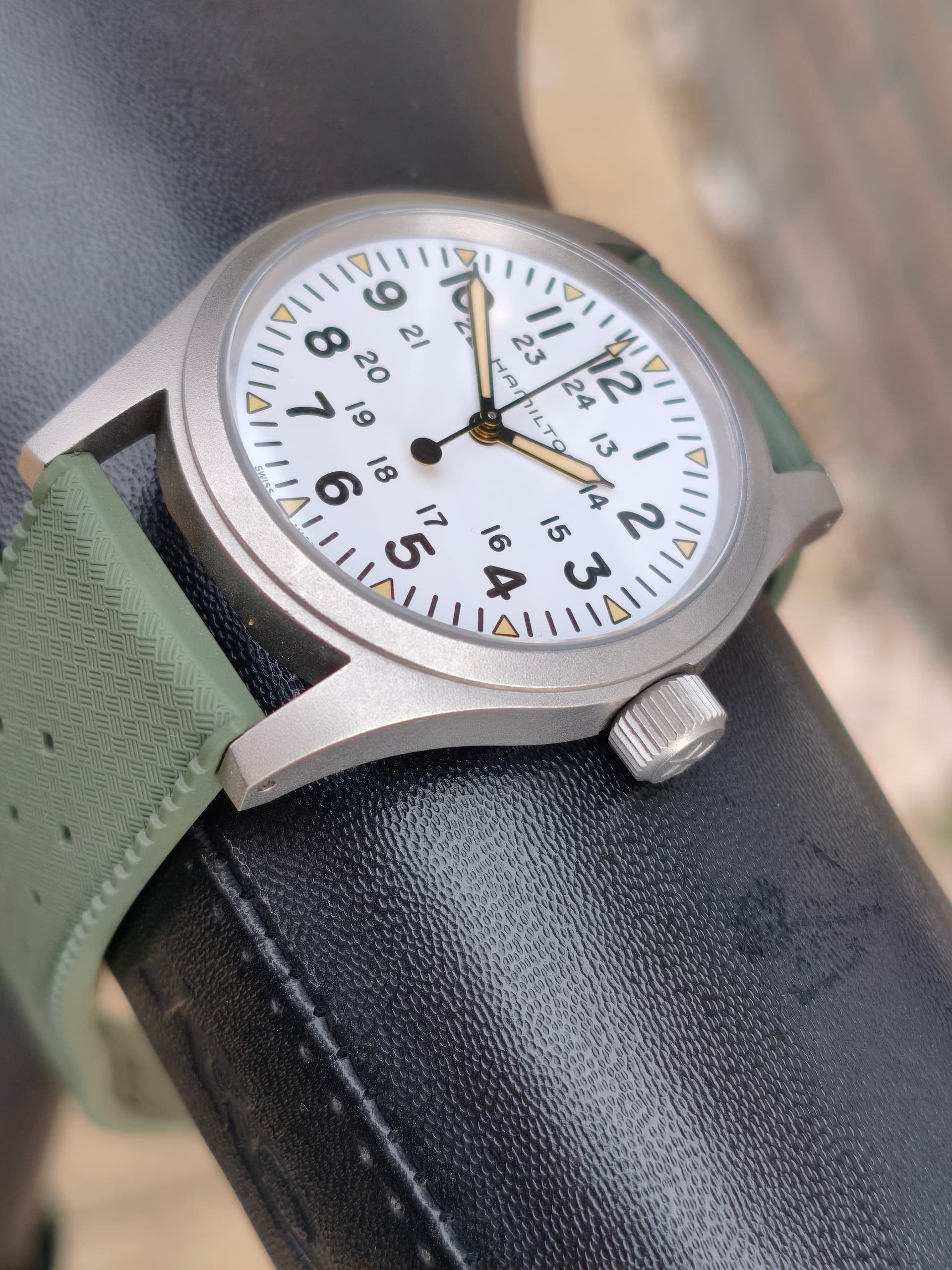 Via Chrono24 deze Hamilton kaki field special edition for hodinkee aangeschaft. Bandje er zelf op gezet de orginele is beige canvas.