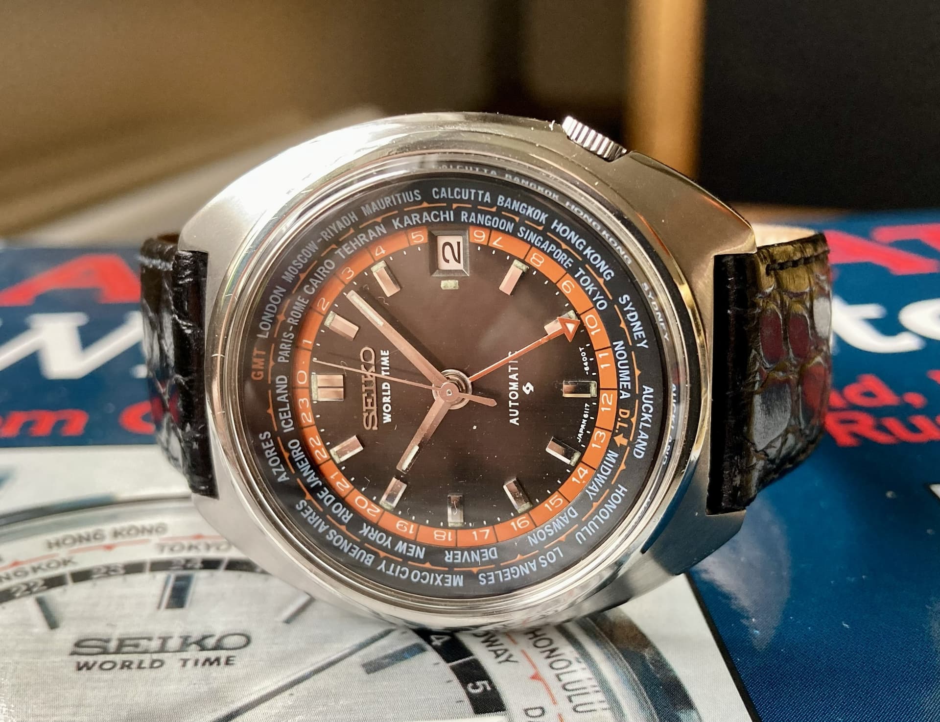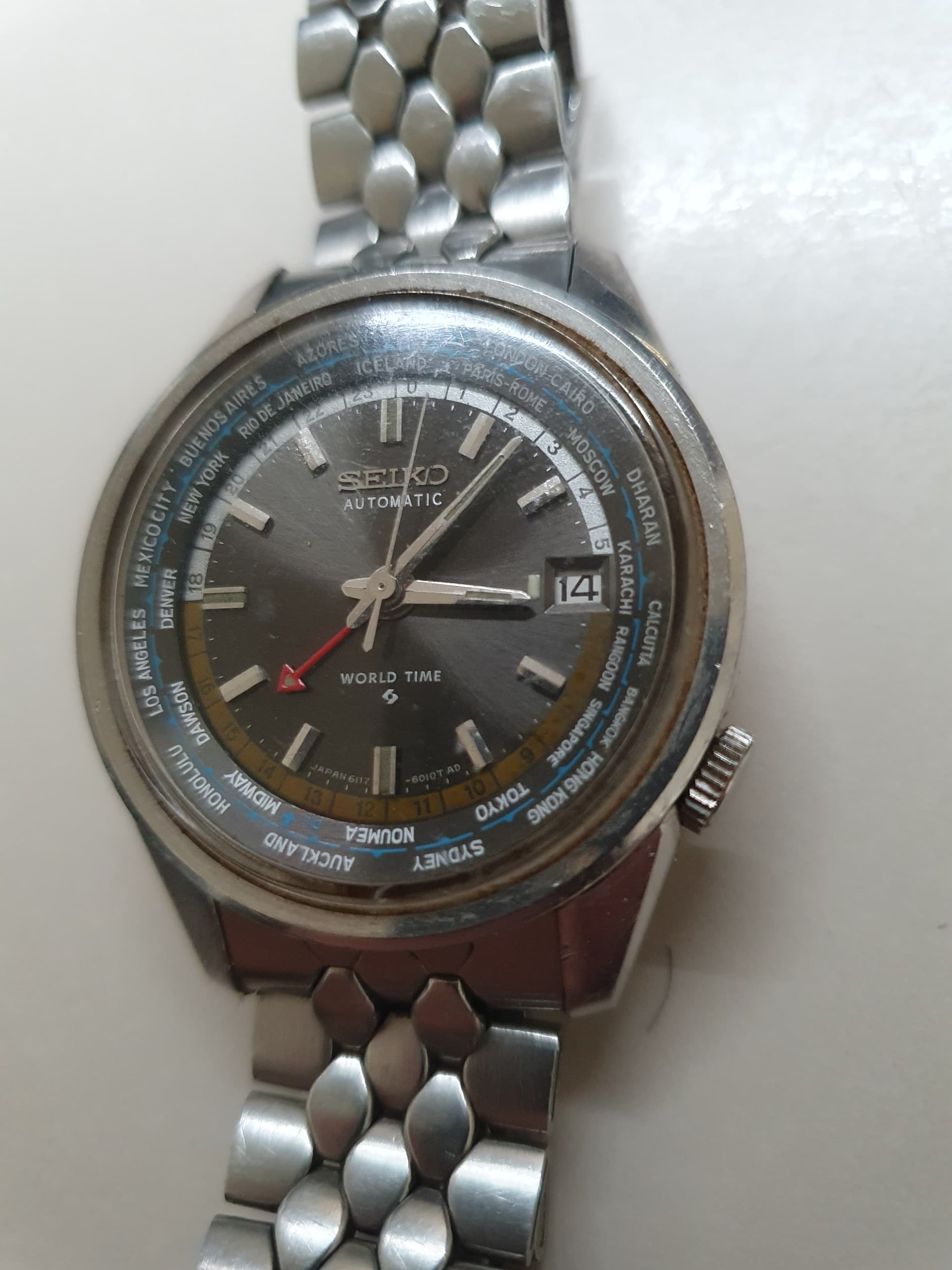 Zoals gebruikelijk bij Seiko, was precisie van het grootste belang en plaatsten ze Londen na GMT op de bezel, net boven Parijs. Een prijzenswaardige aandacht voor detail. Het werd echter bekend als de “foutbezel” en dat is vrij uniek - want in oktober 1971 moest deze opnieuw worden aangepast!