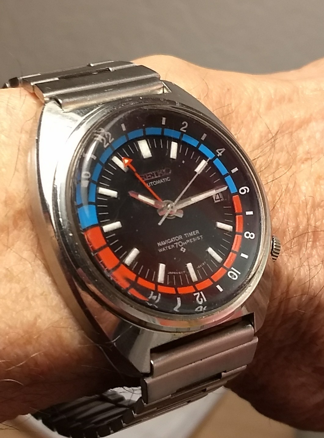 Ik doe mee met de mijne uit Jan. '71. Deze heeft nog de misprint op de 24 hr dial waar London niet bij GMT staat, maar in dezelfde tijdzone als Paris-Rome.
