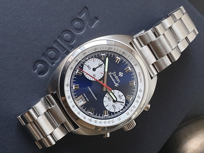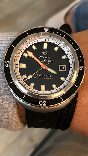 Groot Zodiac fan hier!! Heb er zelf een behoorlijk aantal gehad, voornamelijk quartz. Momenteel heb ik mijn Zodiac collectie teruggebracht naar 3 stuks: een ZMX-03 (quartz), een Oceanaire en een Super Sea Wolf 68. Deze laatste draag ik momenteel het meest, wat een beauty! Althans, dat vind ik