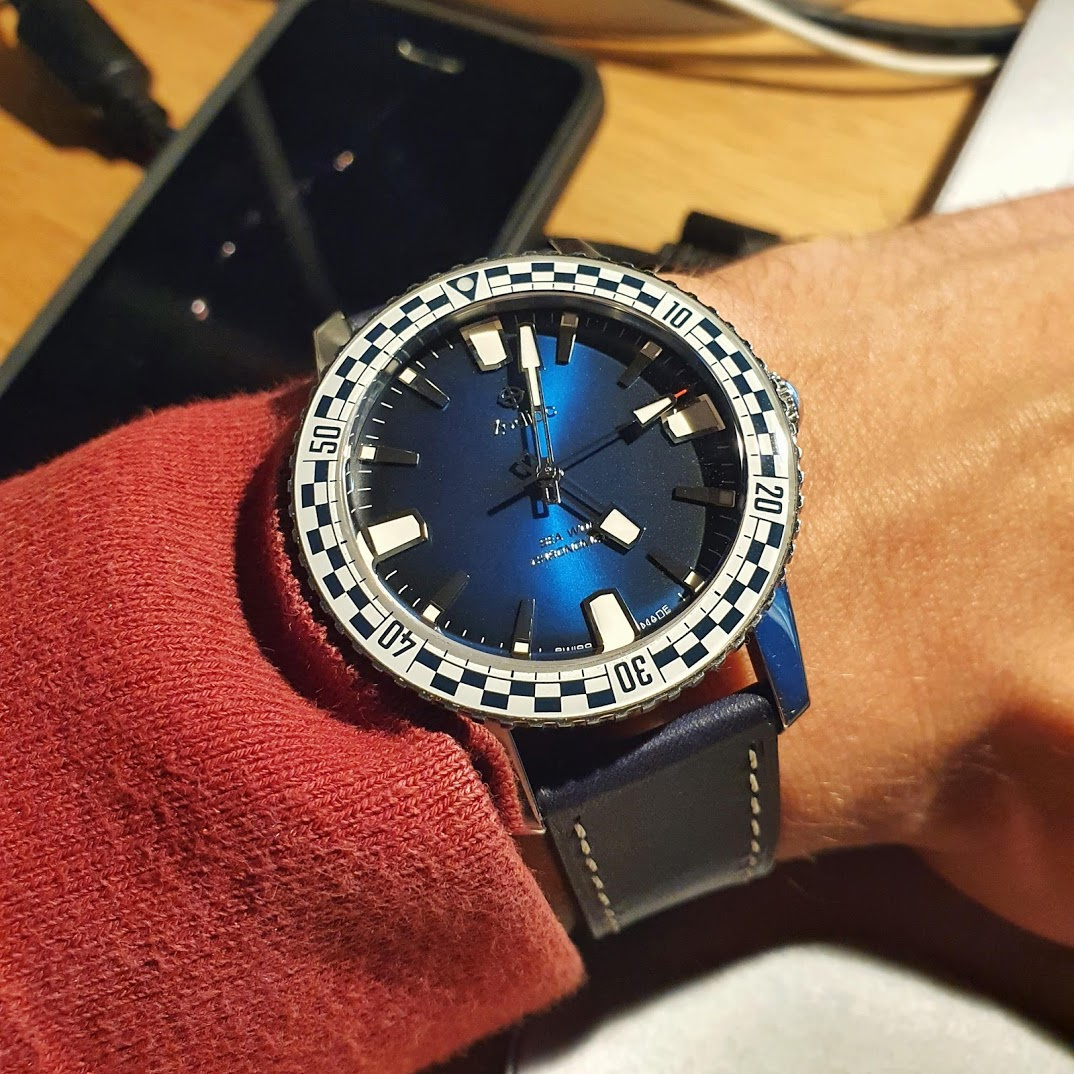 Ik vind het jammer dat ik het horloge destijds niet eerst heb kunnen passen, want hij valt me net iets te groot, misschien is dat vooral optisch door de witgeblokte bezel.