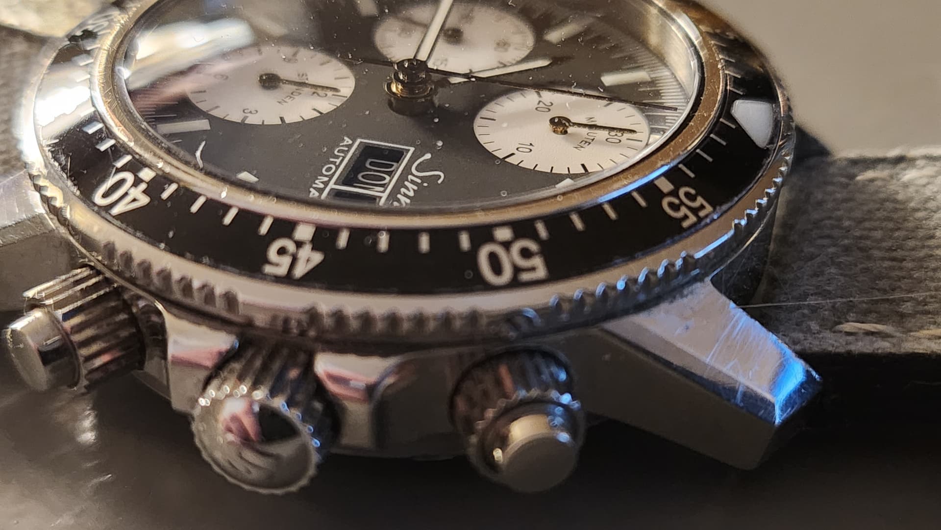 Ik heb altijd al sympathie gehad voor het merk. Mijn eerste +1000€ aankoop was een 556 I MOP, die ik nooit meer weg doe. Maar wat Sinn doet met de 103 doen ze erg goed. Een basismodel met zwarte plaat en plexi, en daarnaast enkele modellen per jaar die soms een handwinder kaliber hebben, dan weer automaat. Soms monotoon, soms een leuk kleurtje. Wat ze echter allemaal gemeen hebben: het zijn allemaal chronografen. Soms hebben ze nog leuke extra’s zoals gmt functie en zelfs maanfase functie. Ze hebben 2 erg solide bracelets voor het model. En de meeste 103’s zijn echte bandensletten. Kortom dit model heeft alles om veel populairder te zijn dan wat ze momenteel zijn. Ik tag alvast even 103 guru @obi-wan-mtb en long time 103 evangelisten @drumstof en @Rutger .