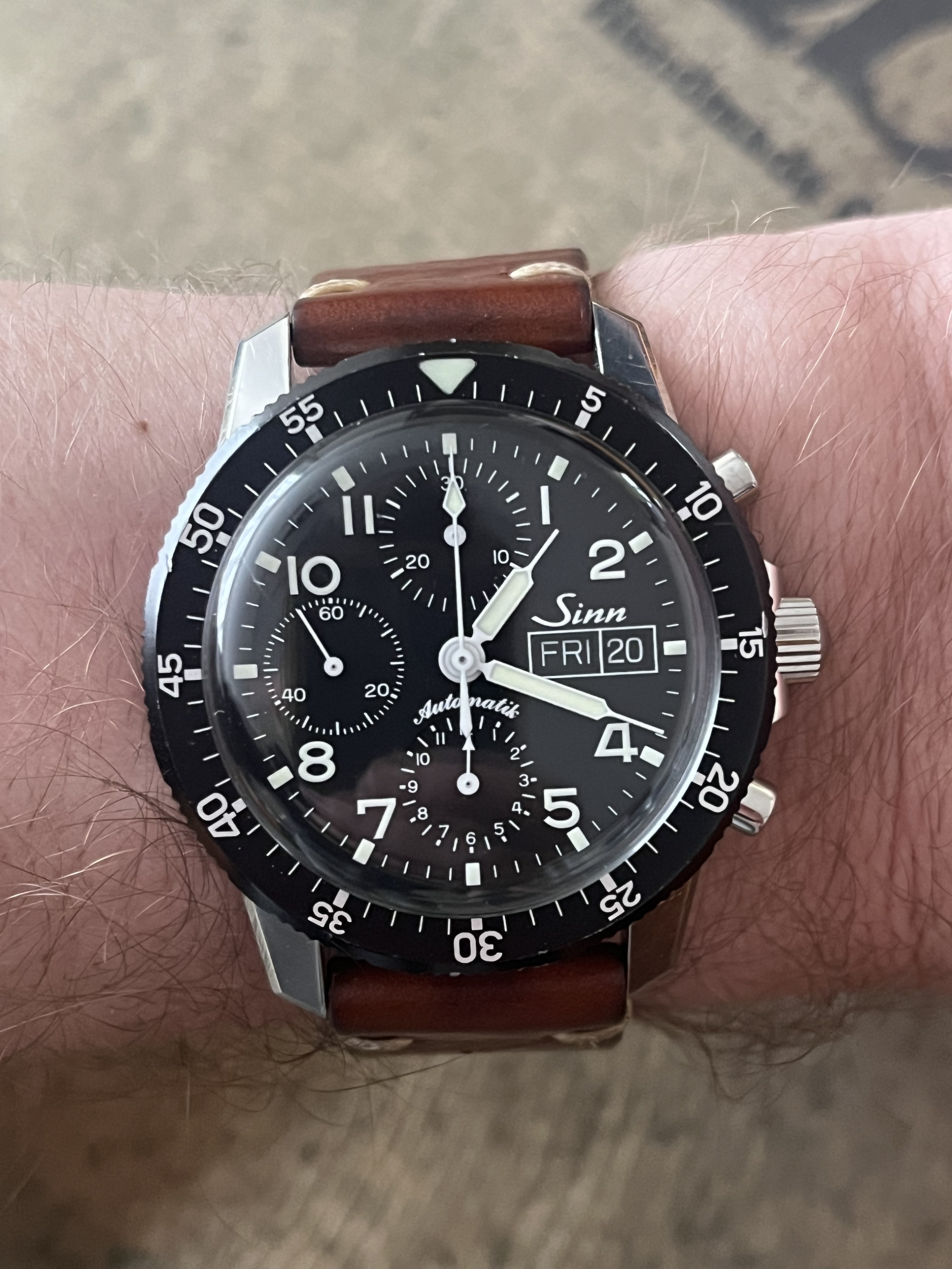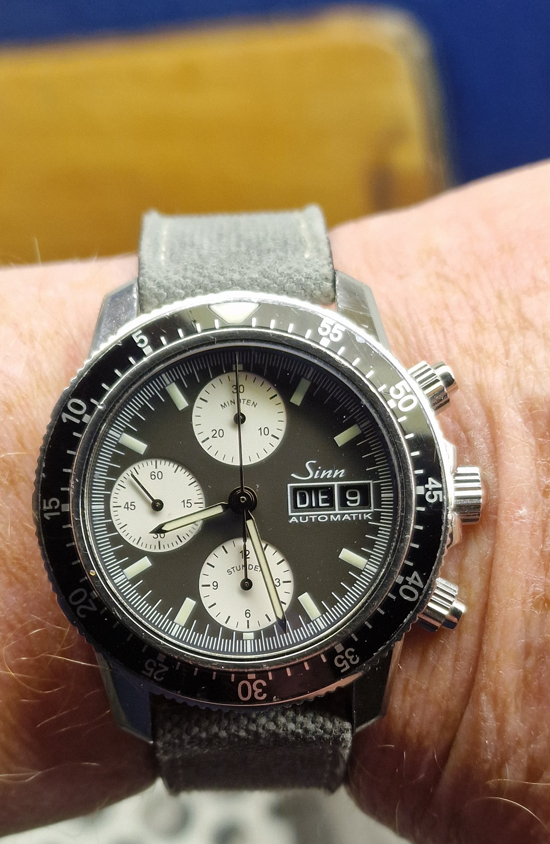 Dit is wel een aparte, namelijk eentje uit circa 2000, toen Sinn (en de rest van de horloge-industrie) overstapte van Tritium naar Luminova.