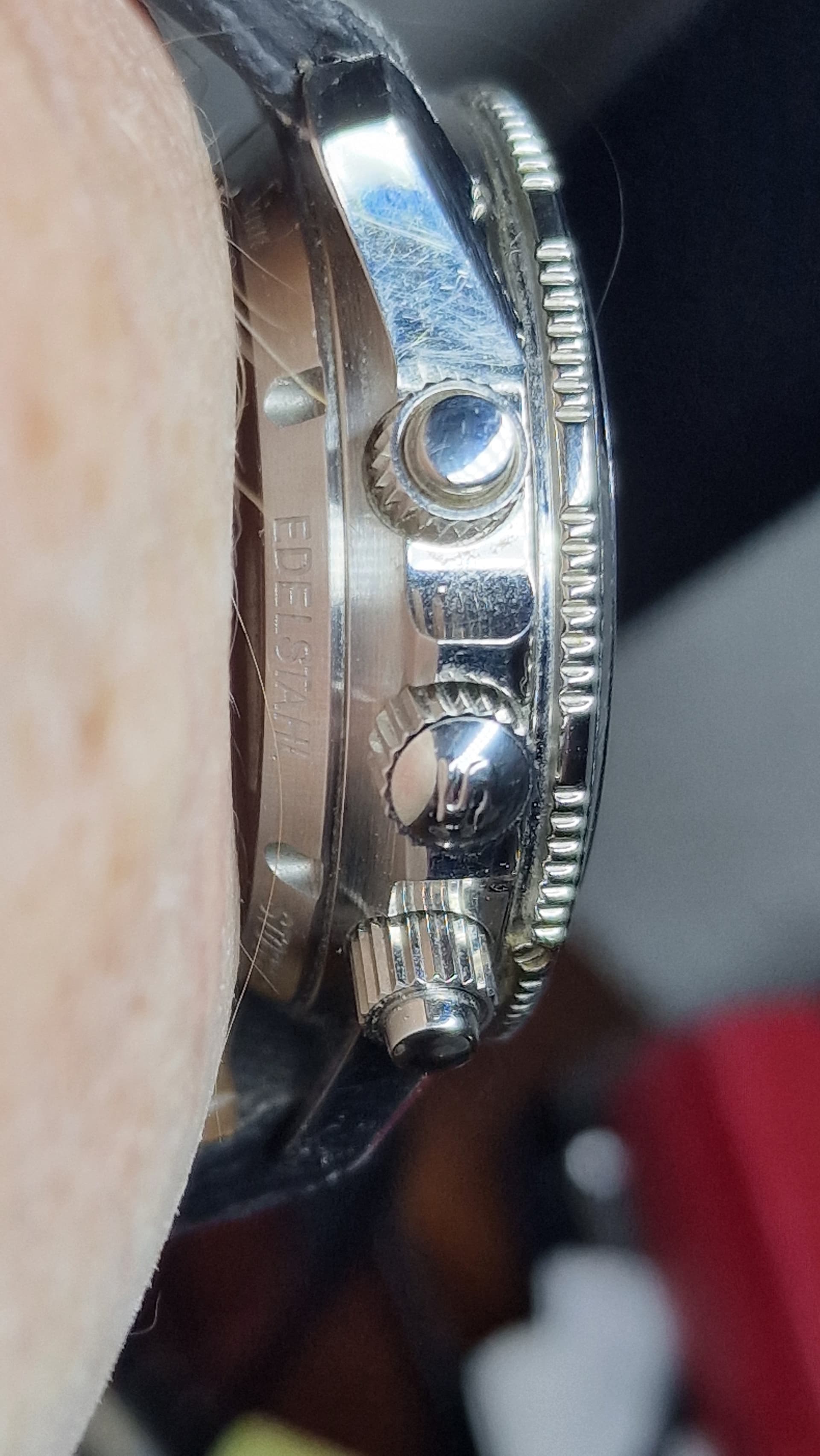Mooie versie wel. En hoewel met saffier toch opgebouwd zoals de plexi versie waardoor ie waarschijnlijk iets platter op de pols ligt. Heel mooi.
