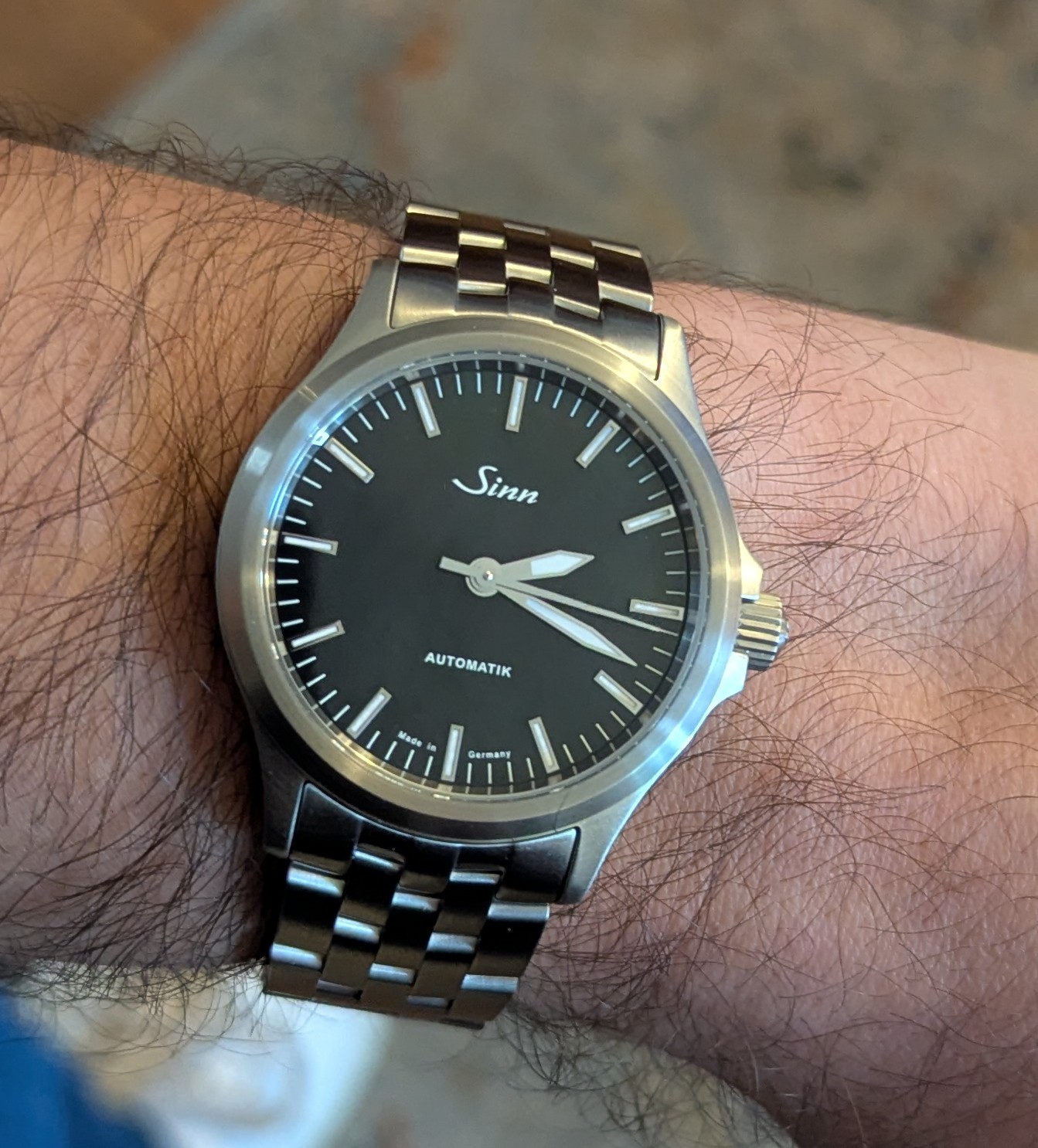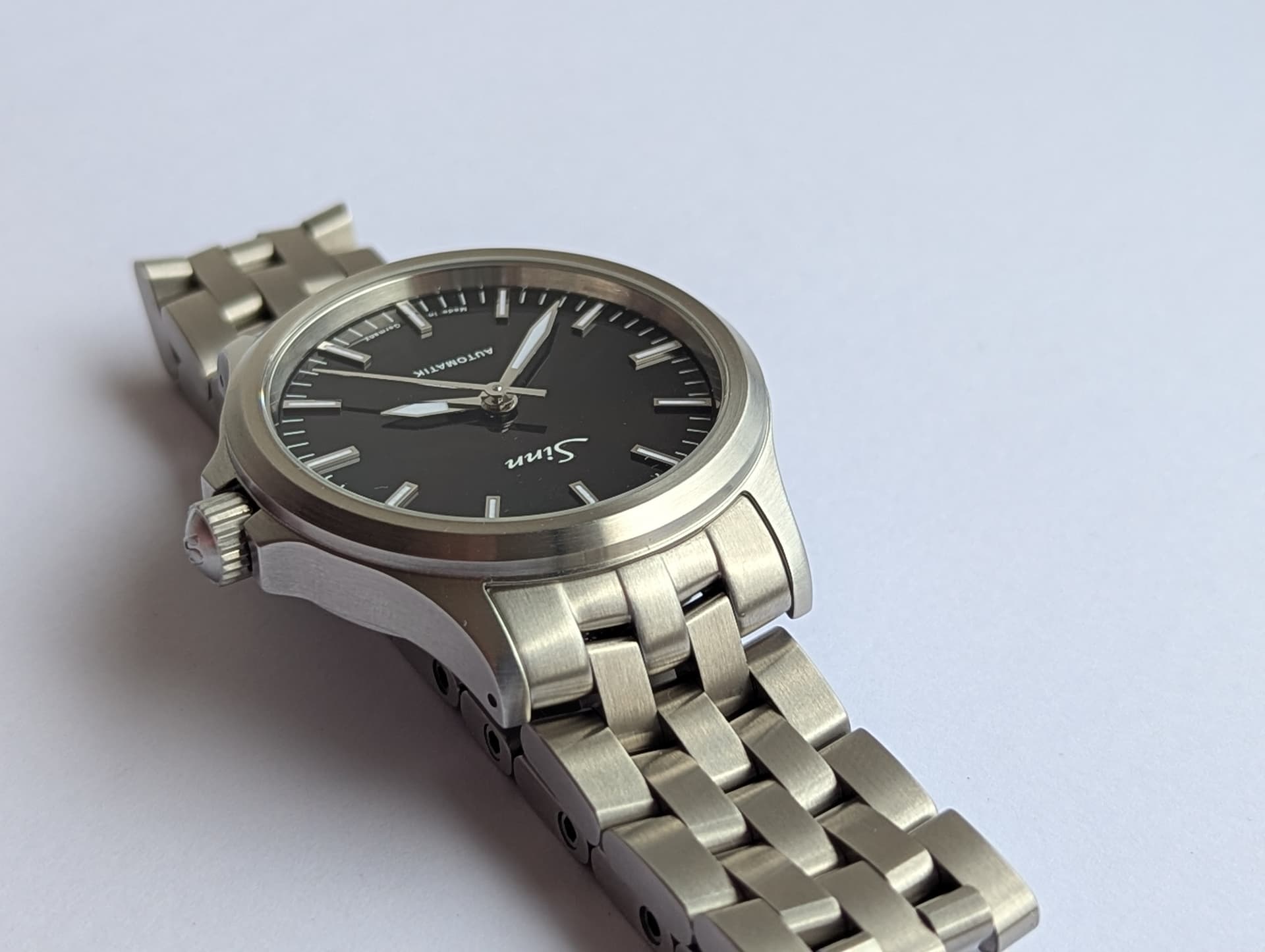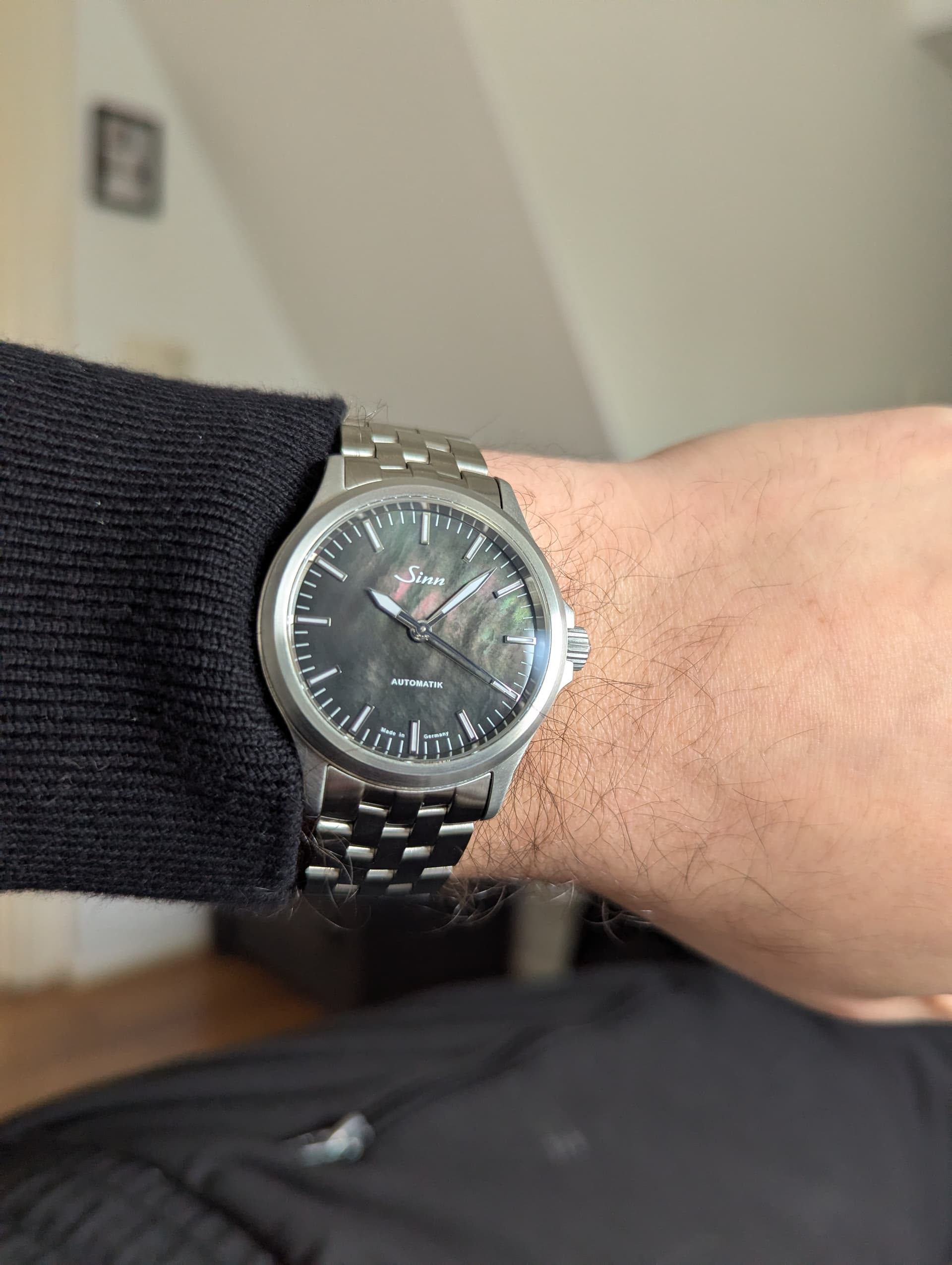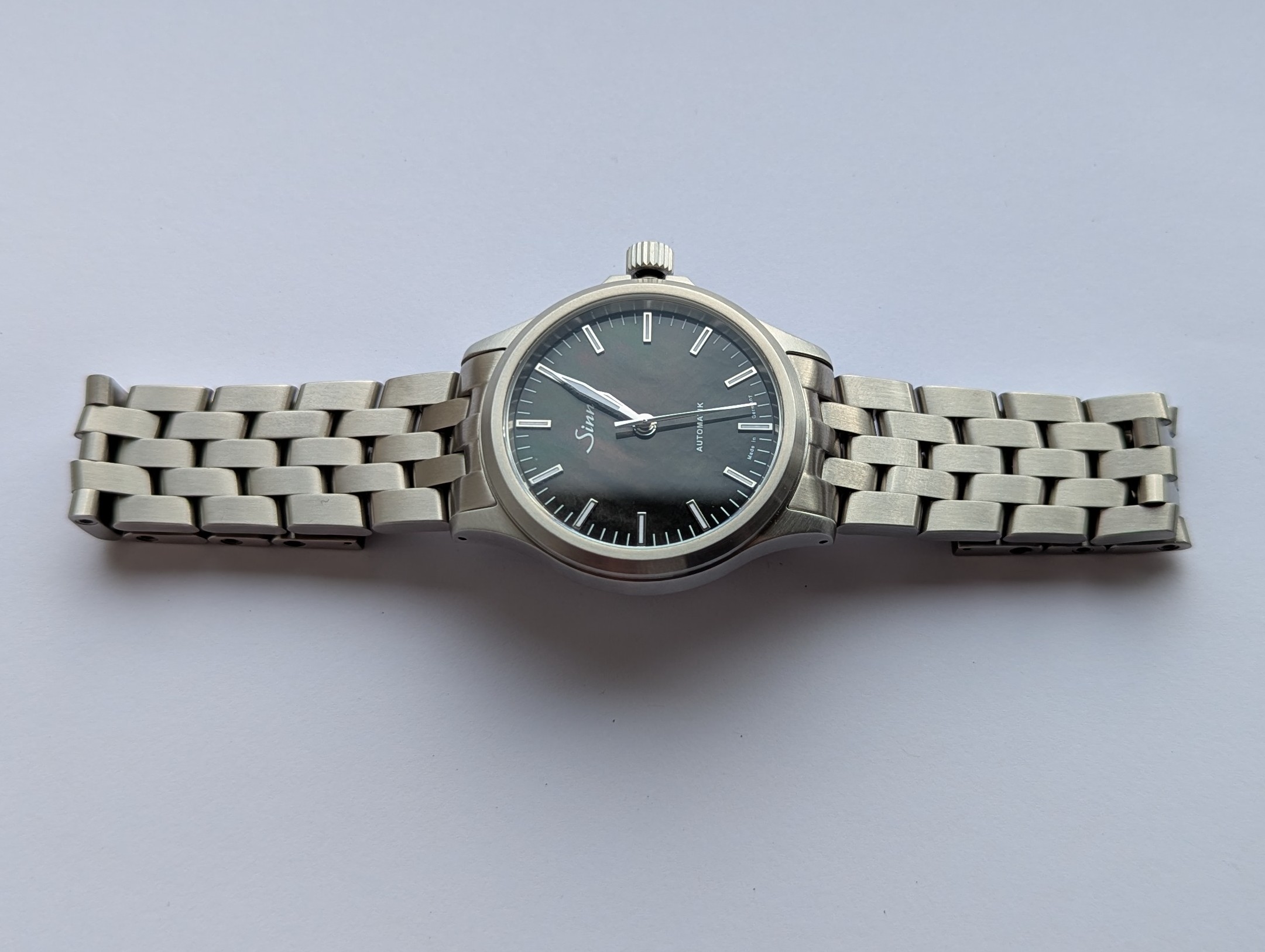 Te koop is mijn Sinn 556 met wijzerplaat van zwarte parelmoer, op de fraaie Fine Link bracelet die in deze uitvoering volledig gesatineerd is.
