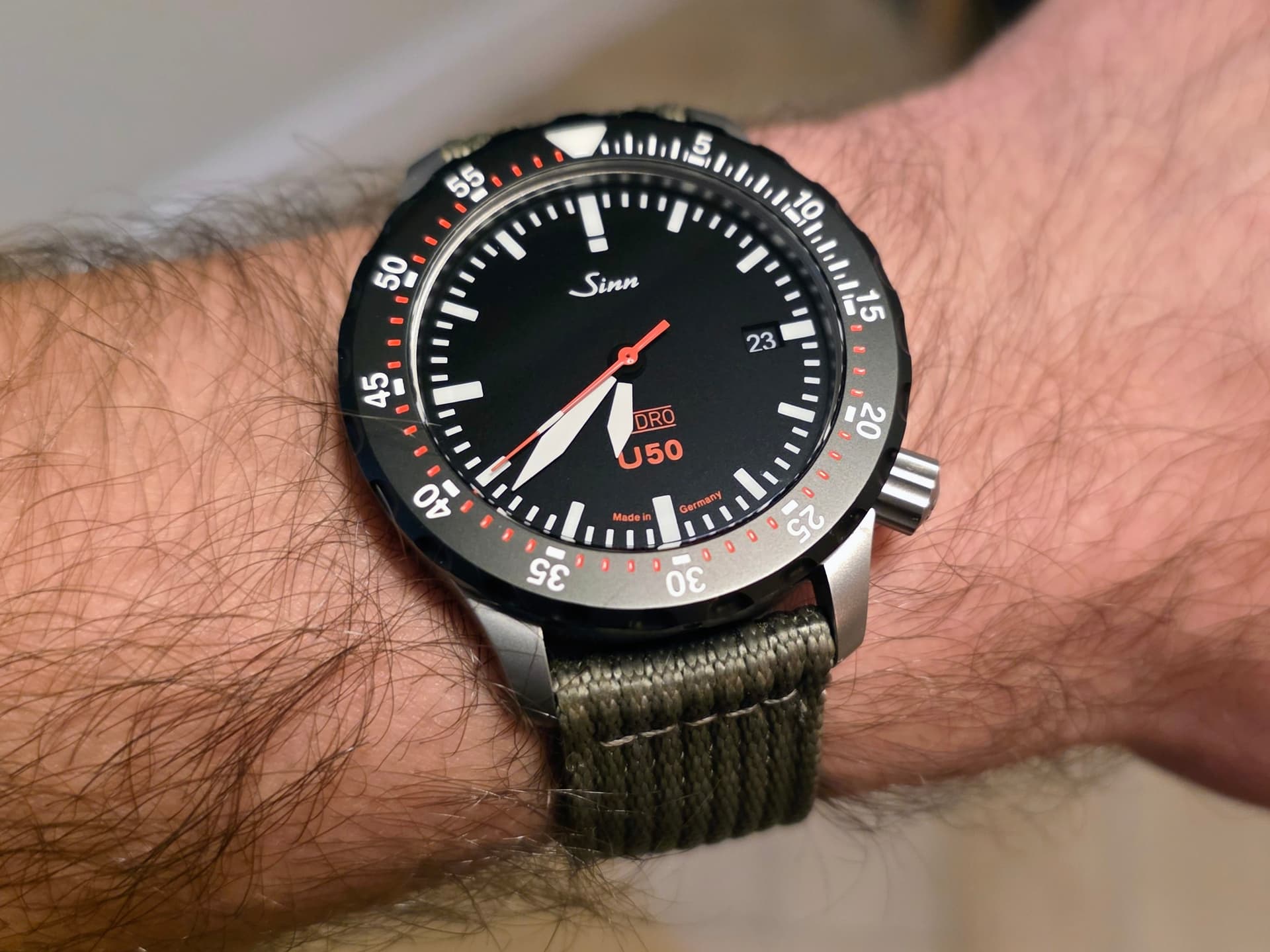 Van de vorige eigenaar alle soorten bandjes mogen erven, dus o.a. deze gave originele Sinn canvas; ook hieraan voel je de Duitse degelijkheid ![]()