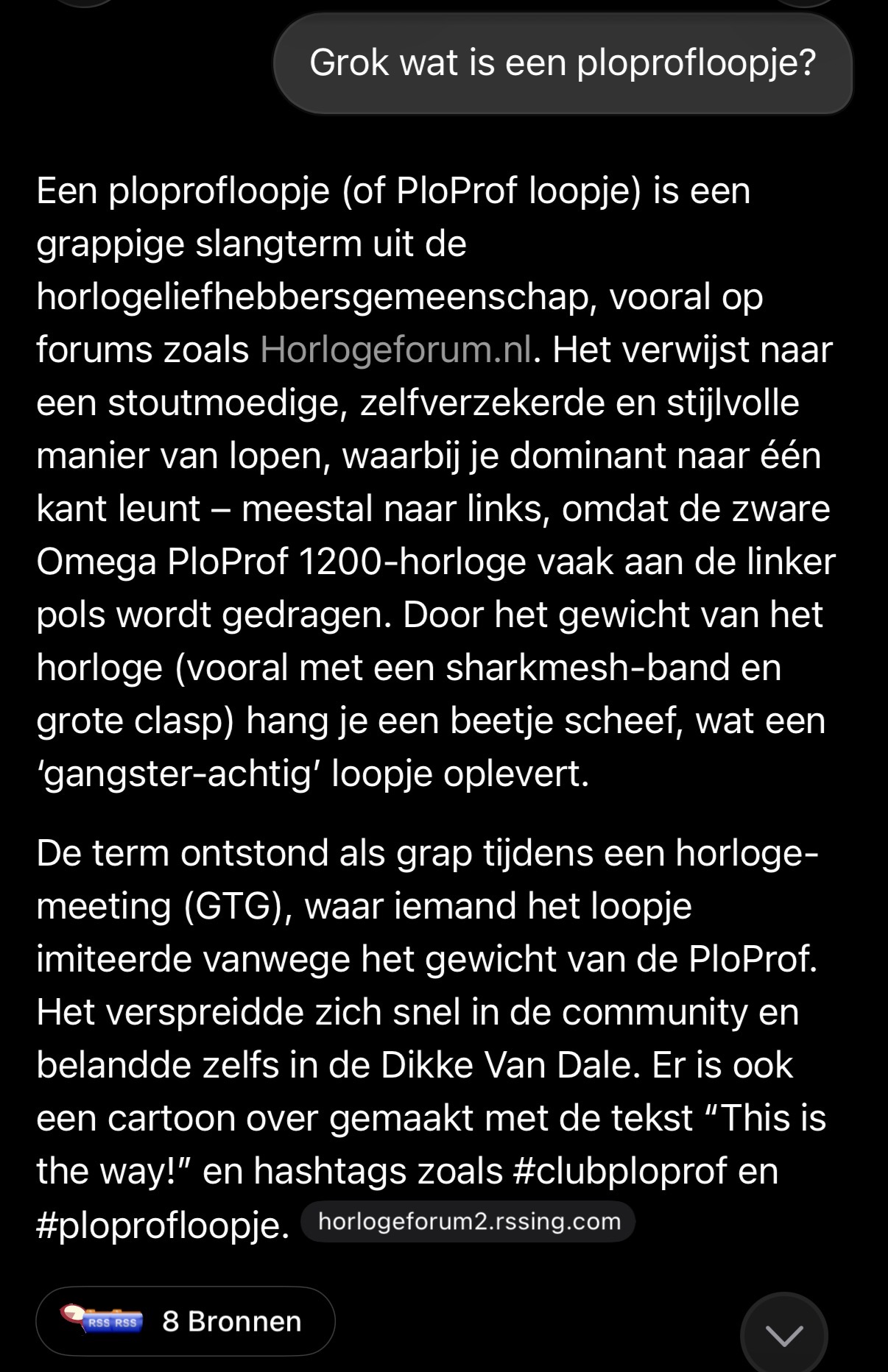Dit alles ging ook niet onopgemerkt aan de AI Large Language Models voorbij. Vraag een willekeurige LLM wat een Ploprofloopje is en het legt je haarfijn hallucinerend uit dat dat te vinden is in de Dikke van Dale.