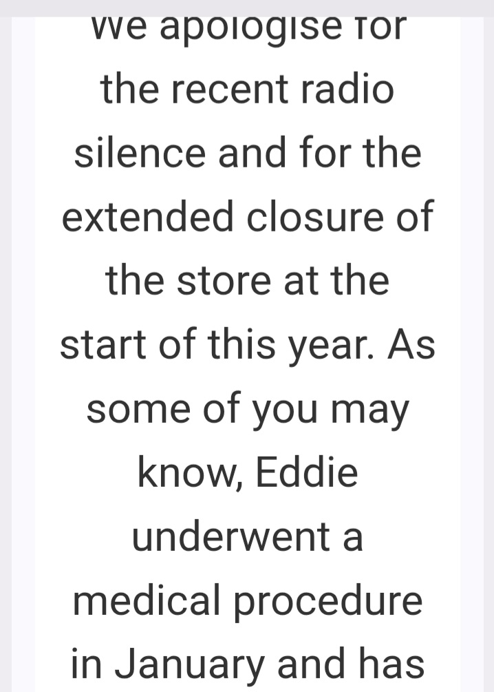 Eddie is opgenomen in het ziekenhuis, dus opening is even uitgesteld, maar je wilt hem toch niet kopen.