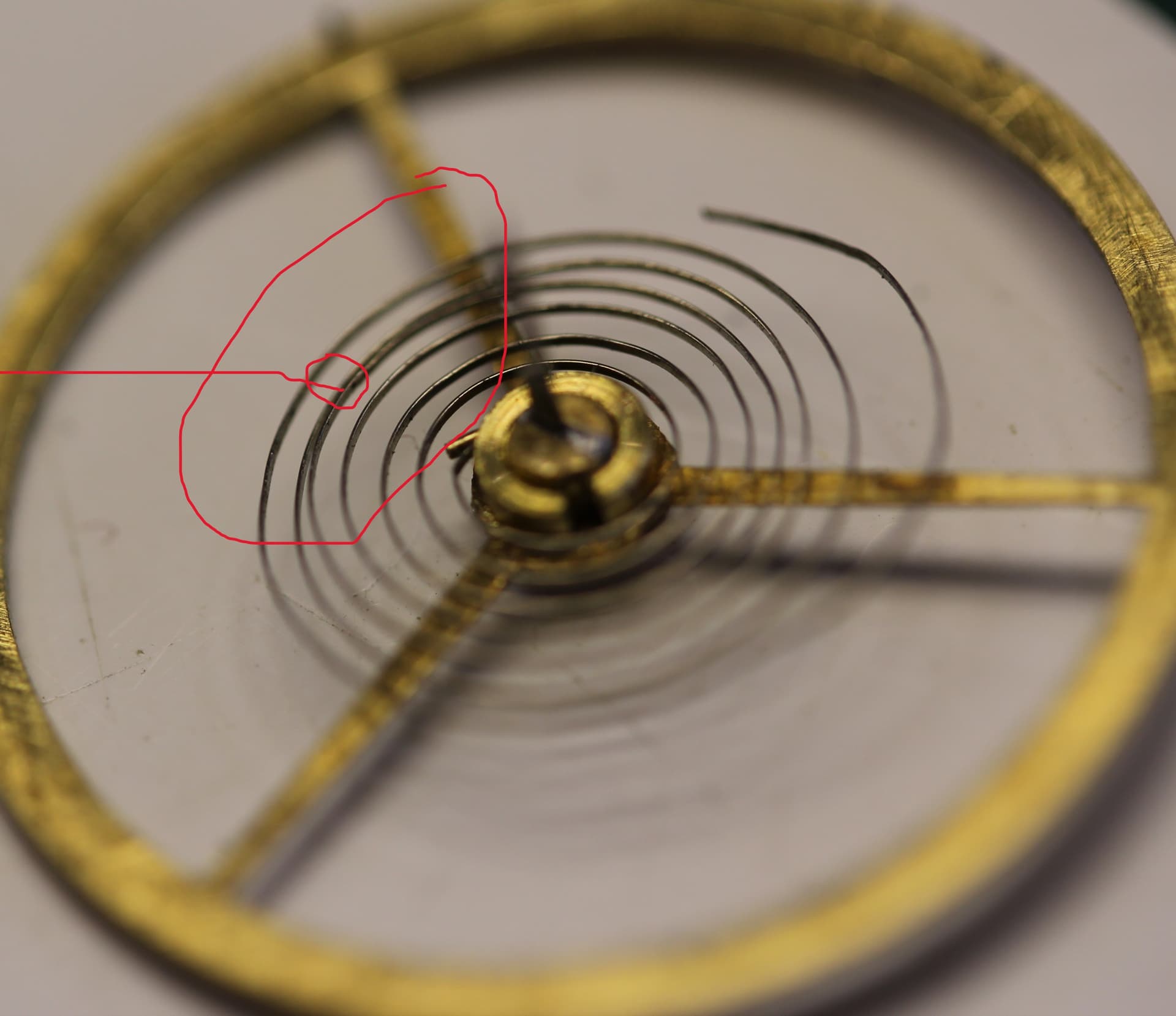 Dan kom ik bij de spiraal, die was helemaal in de war, dusdanig krom en getorst, dat het volledig strak moest worden geplooid. Te bedenken dat die spiraal meer dan 220 jaar in dat horloge zat. De veerbaarheid resp. spanning is dan ver te zoeken en zal de amplitude behoorlijk verminderen.