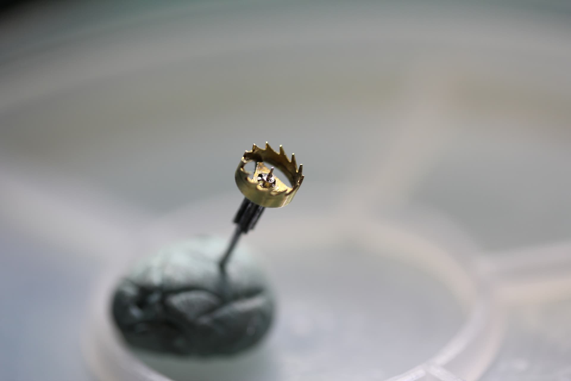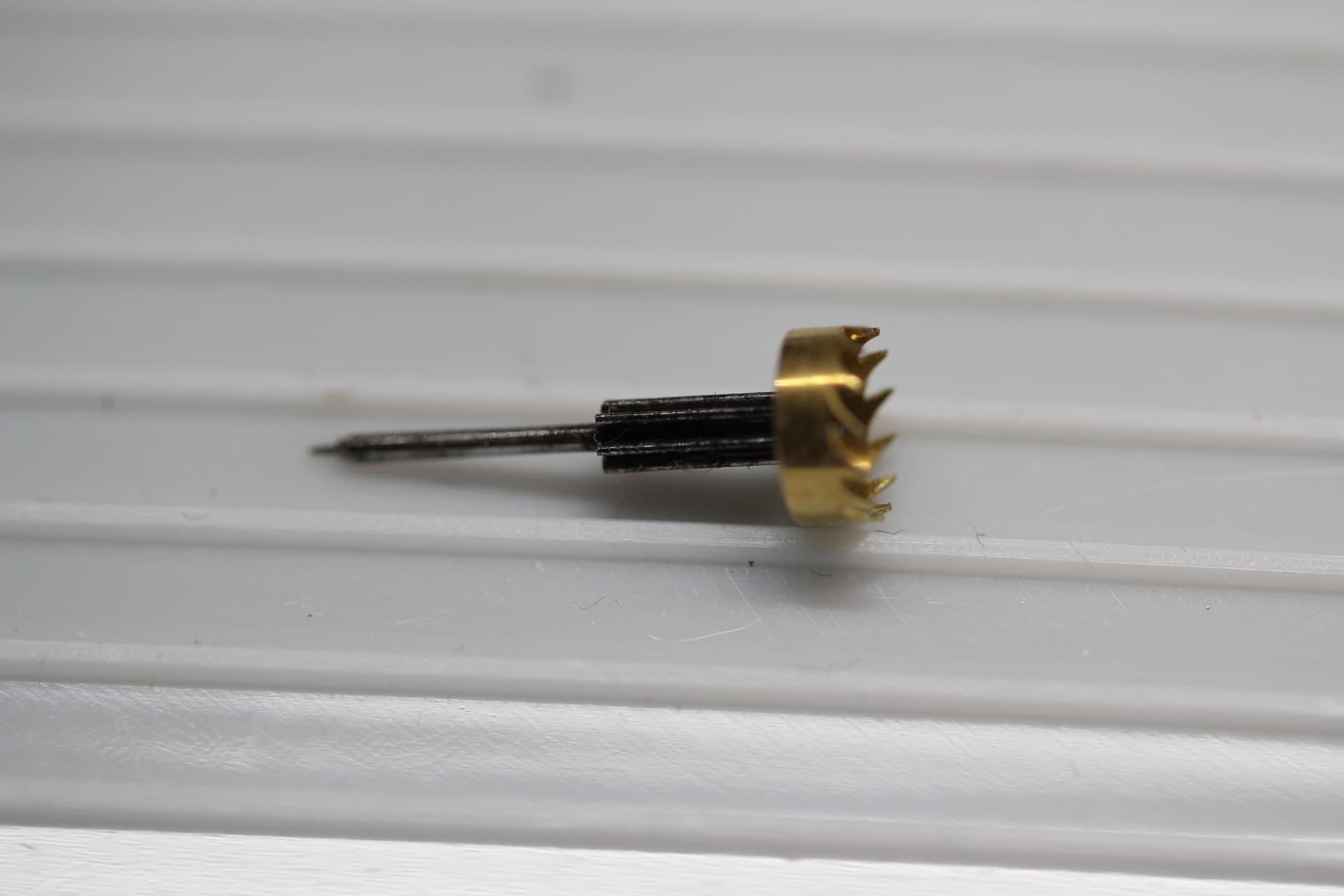 Dus heb ik gekozen om een groter gat in de as te maken en een tampon te bewerken die erin geperst kan worden. Let wel, we hebben het hier over horloges en niet iets anders.