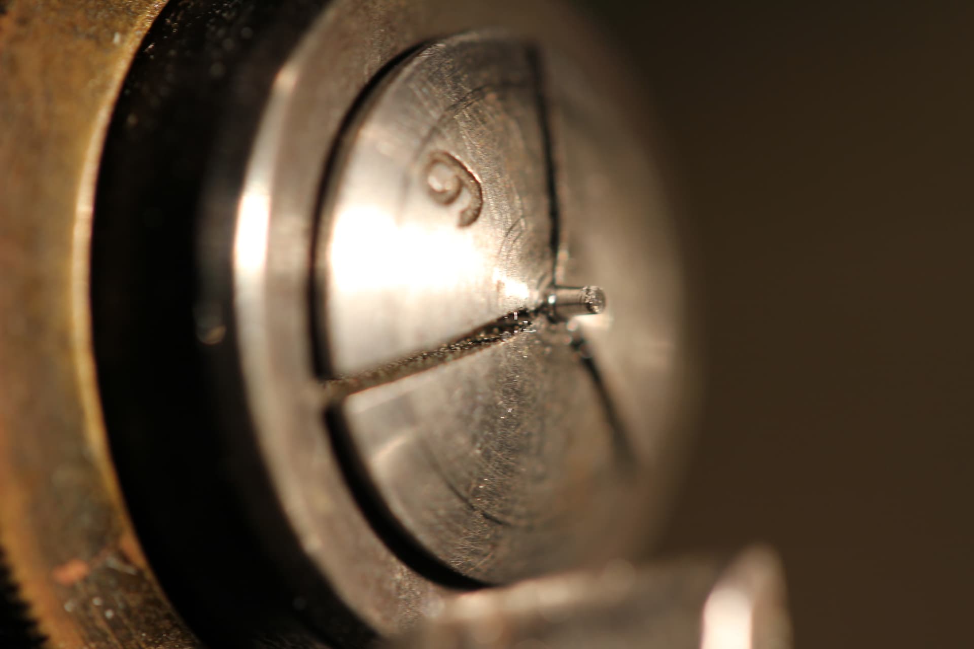 Ook een pin bij het kompas was afgebroken, zie de foto’s, de spiraal moet tussen de twee pinnen door worden geleid om de snelheid van de tijd af te kunnen regelen. Ook het afbreken van deze pin is onwaarschijnlijk bij normaal gebruik.