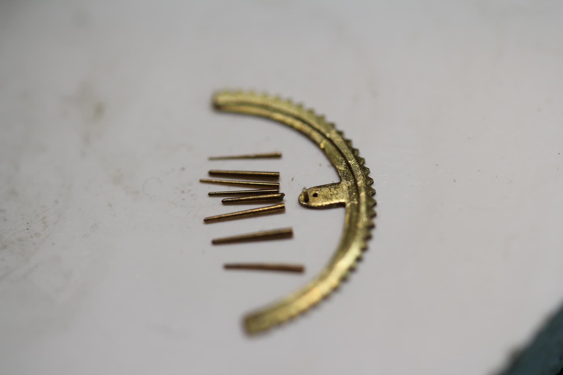 De volgende stap is het plooien van de spiraal, dat is een secuur en bewerkelijk gedoe, daar moet je echt de tijd voor nemen, de juiste pincetten, geen trillende handen en rustig aan werken, soms duurt dat even en soms gaat het sneller.