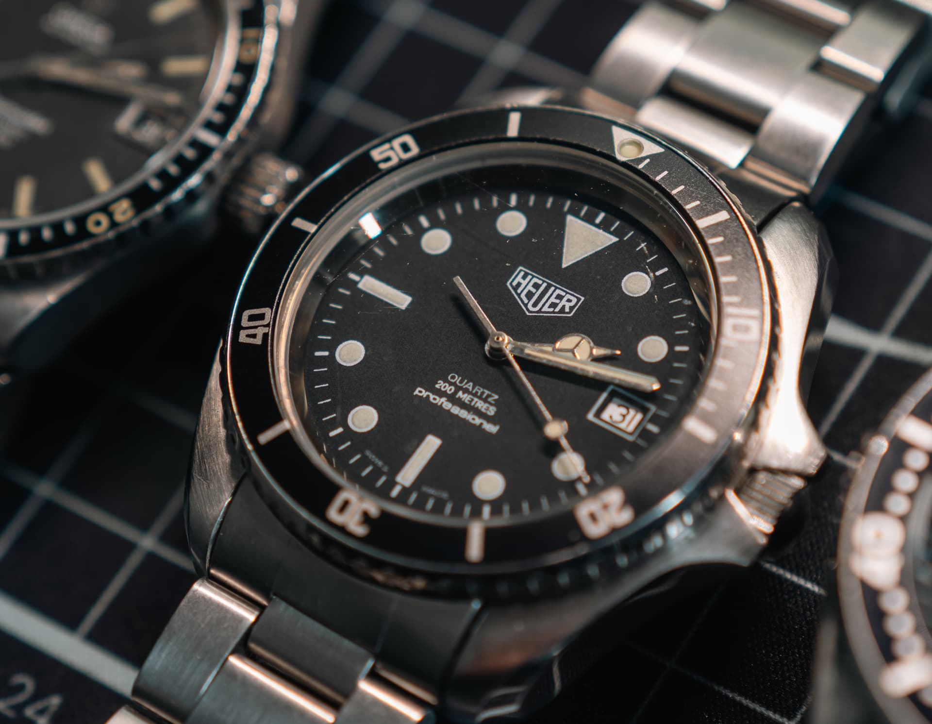3. De Redder in Nood: Heuer 980.006 (ca. 1983?) De klassieke Jumbo Diver in de Monnin-kast. Het horloge dat Heuer door de crisis heeft geholpen vlak voordat het TAG werd. Een eerlijke quartz beater die bewijst dat batterij-horloges ook ziel kunnen hebben. Hij draagt gewoon heel modern voor zijn leeftijd.