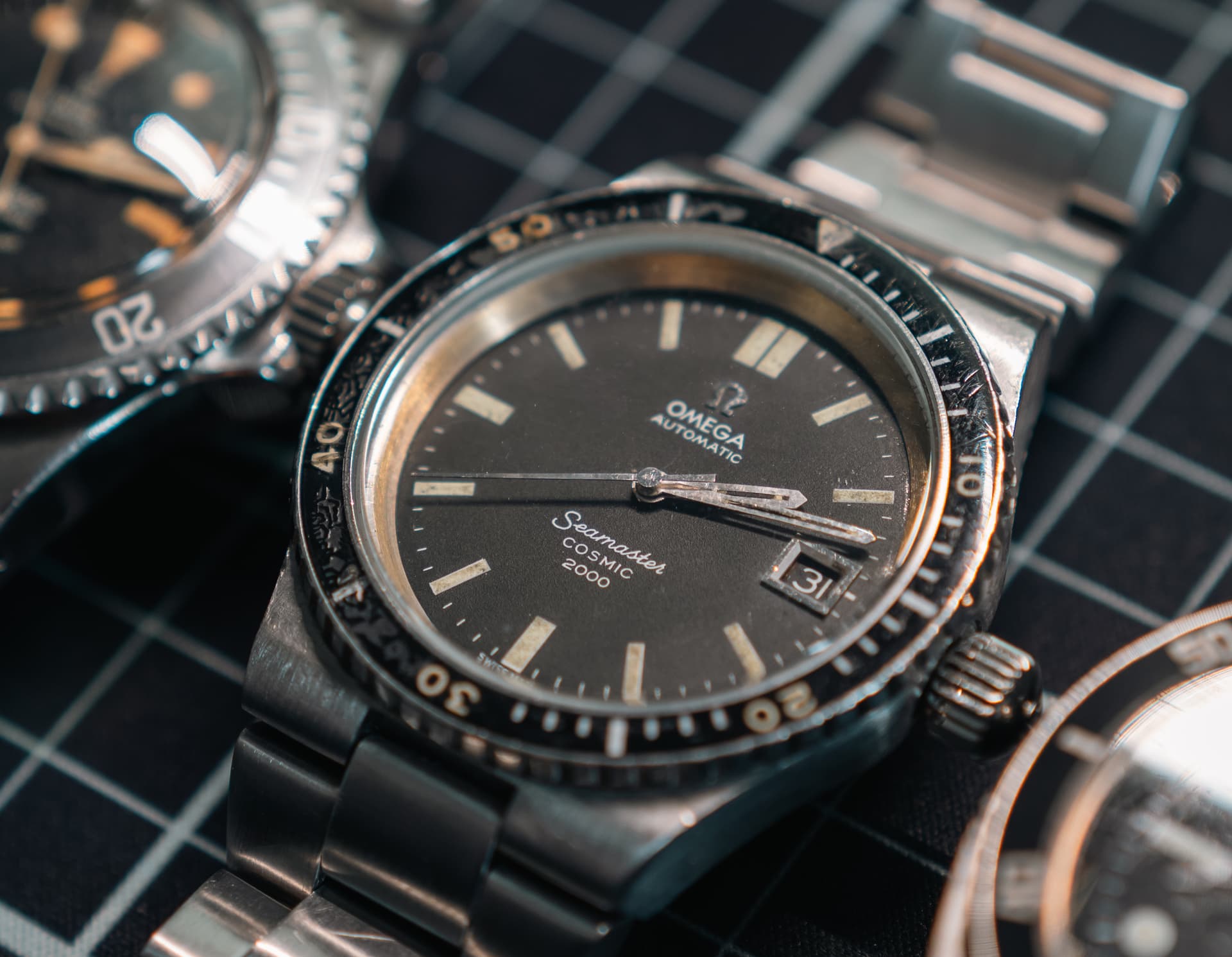 2. De Jaren '70 Tank: Omega Seamaster Cosmic 2000 (Ref. 166.137) Mijn nieuwste “project” dat geen project meer is. Een heerlijke monobloc kast uit 1971. Deze heeft net een full service gehad bij Wesselink & Vreeker, inclusief nieuwe kroon en pakkingen. Hij is weer 10 bar getest, dus deze 50-plusser mag gewoon weer het water in. Niet dat ik dat ga doen, maar toch fijn gevoel. De geïntegreerde band en het gebrek aan crown guards maken hem heel anders dan de rest.