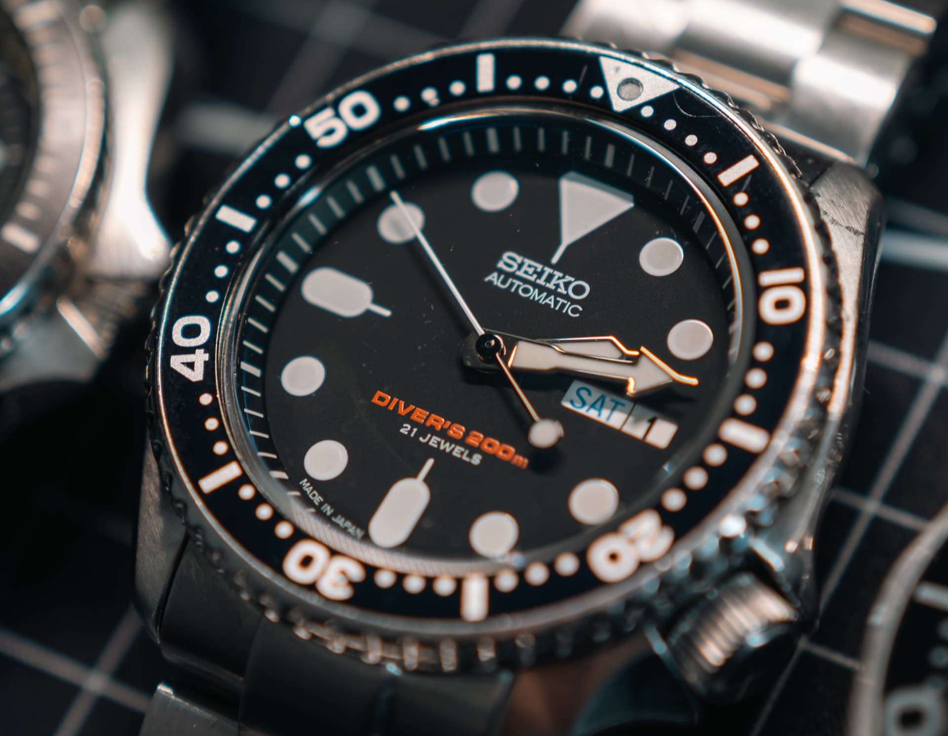 4. De Legende: Seiko SKX007-J Geen duikerscollectie is compleet zonder. Dit is de Japanse versie (J1). Ik heb hem al 10 jaar en hij gaat nergens meer heen. Ik heb er zelf saffier in gezet. Gewoon, omdat het kan. De ultieme “grab & go”.