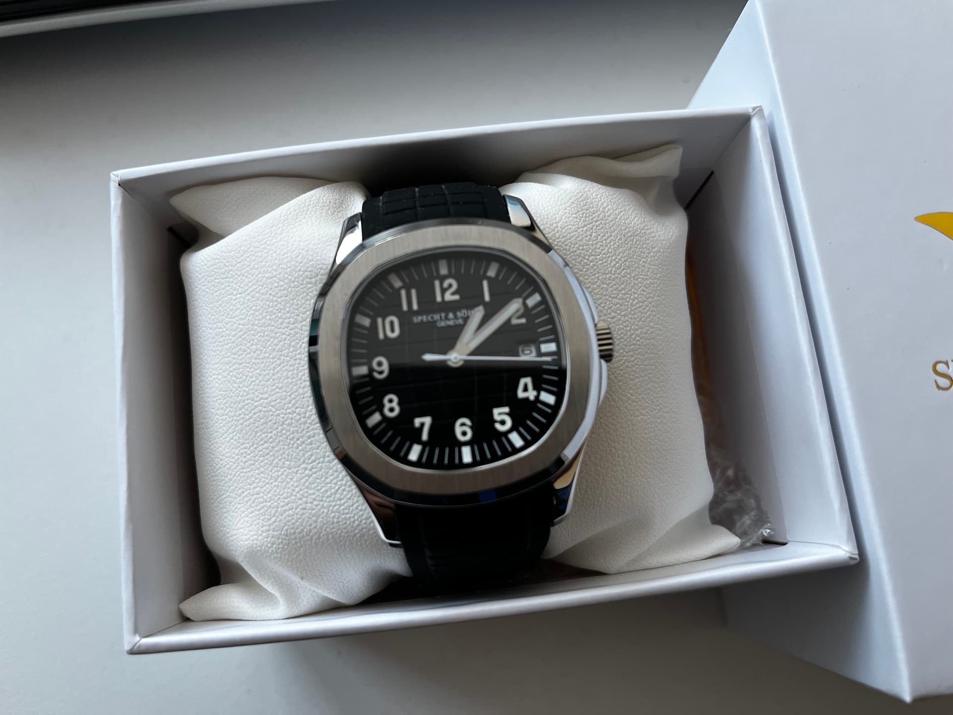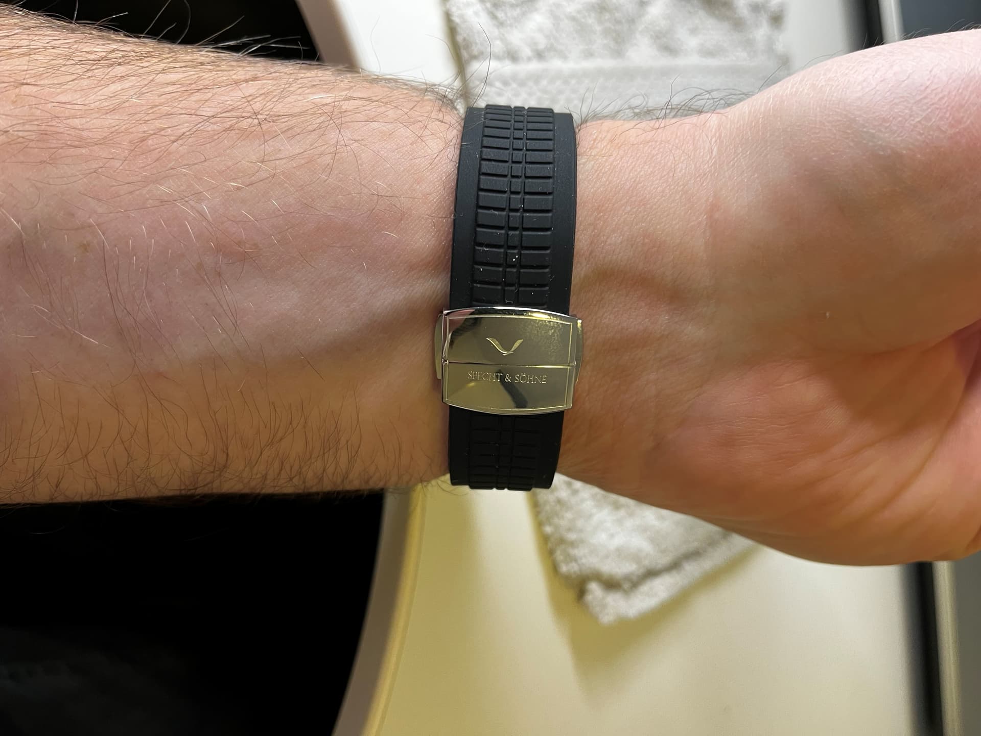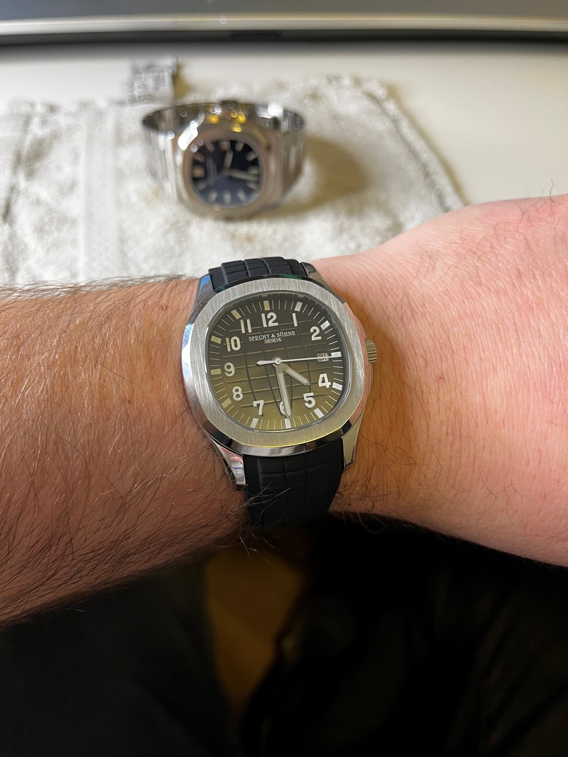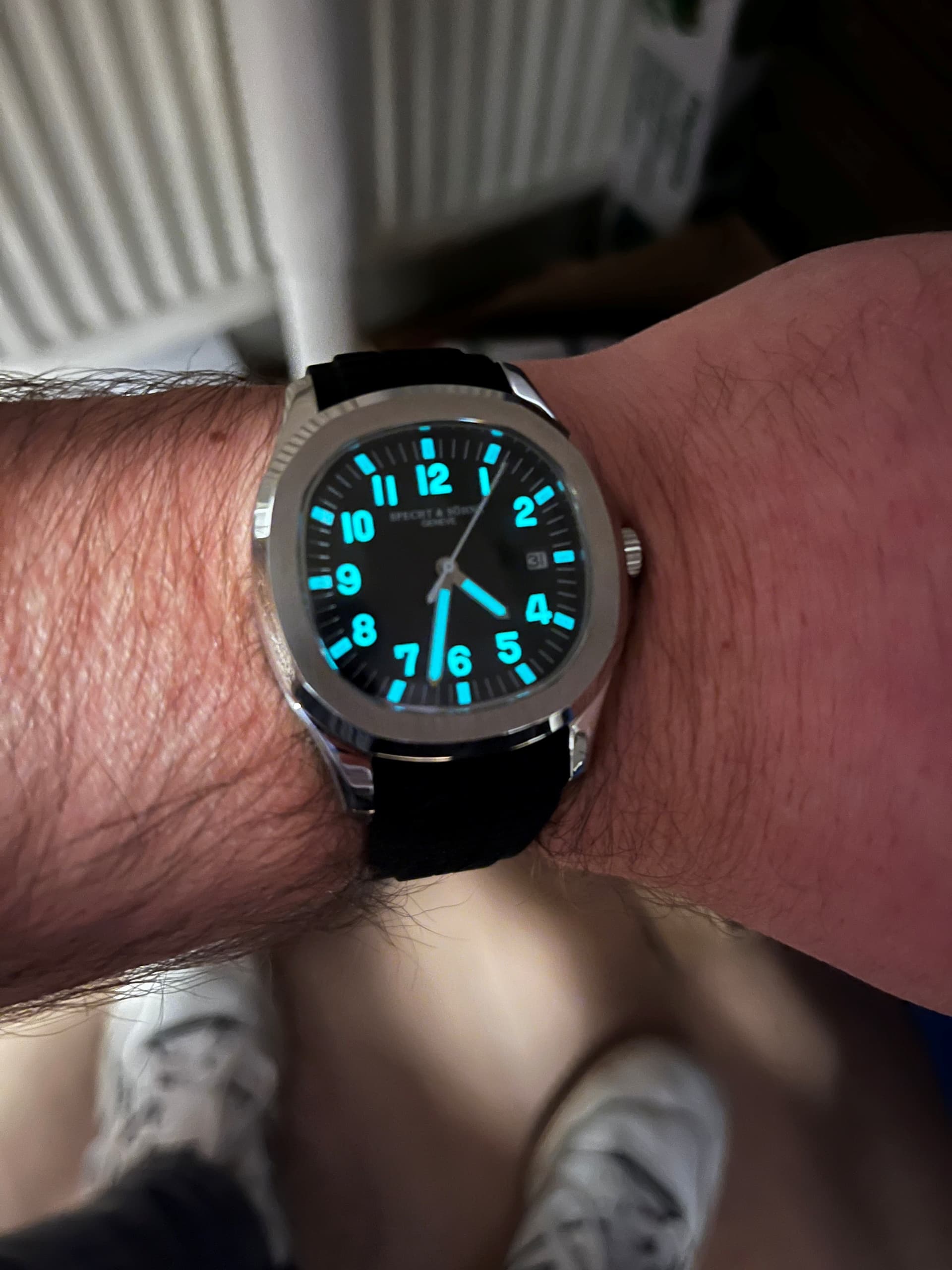 het horloge is dus ZGAN ik heb enkel de rubber band op maat (18,5cm) gemaakt en een paar keer binnenshuis gedragen.