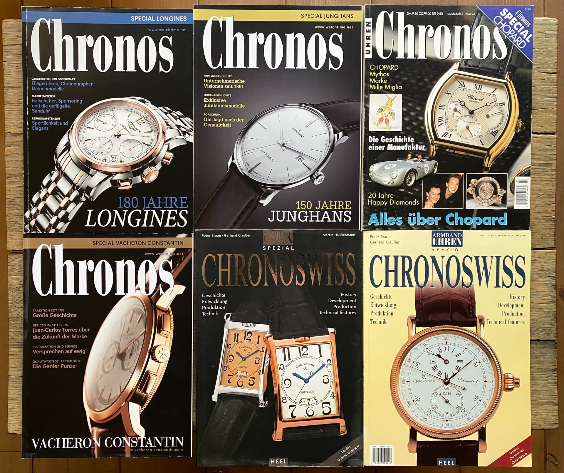 Logines 180 jaar, Vacheron Constantin, Junghans 150 jaar, Chronoswiss 2x en Chopard.