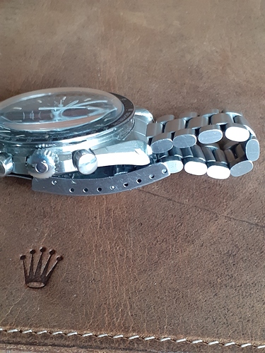 Hmmm aftermarket bandje? Metaal ziet er heel anders uit en sluit niet echt soepel aan op de lugs? Of hoort dat zo/?