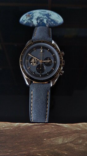 Deze rasechte moonwatch heeft een nog nooit geopende kast, de rode stip staat nog op het deksel/kast…