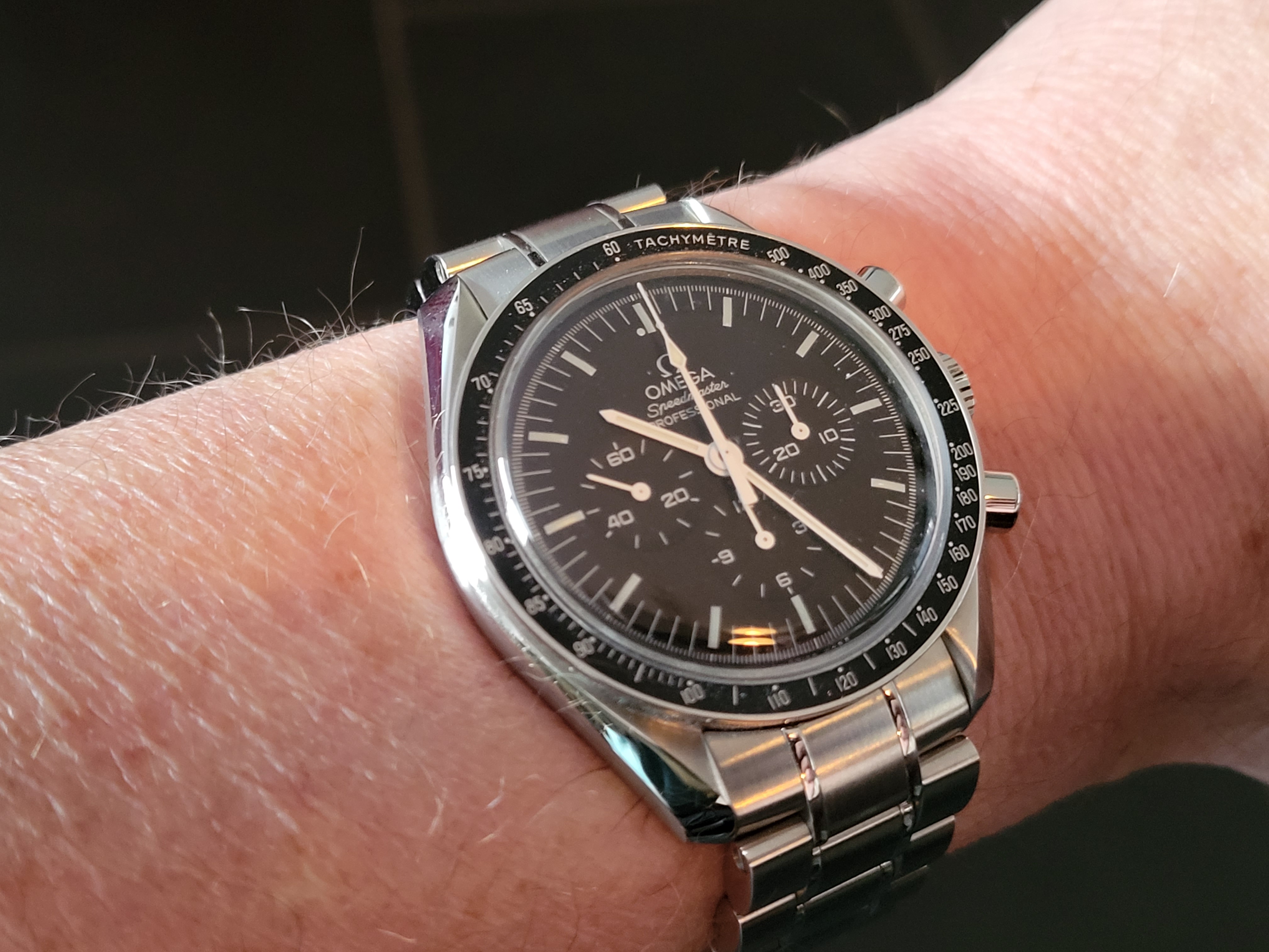 Na de aanschaf afgelopen zomer van mijn eerste Rolex heeft de Speedmaster erg weinig draagtijd gekregen. Afgelopen 2 dagen maar weer eens te voorschijn getoverd.