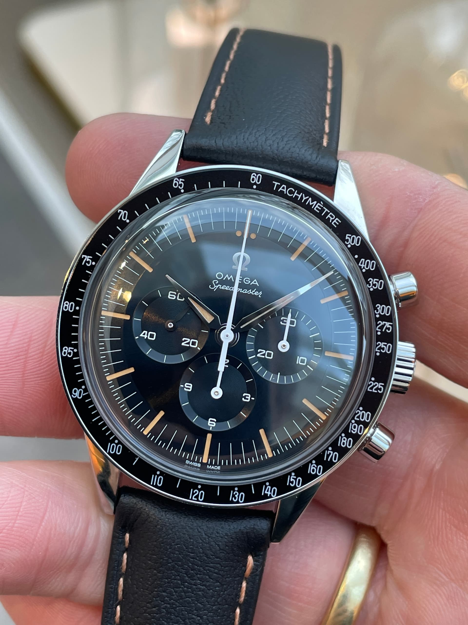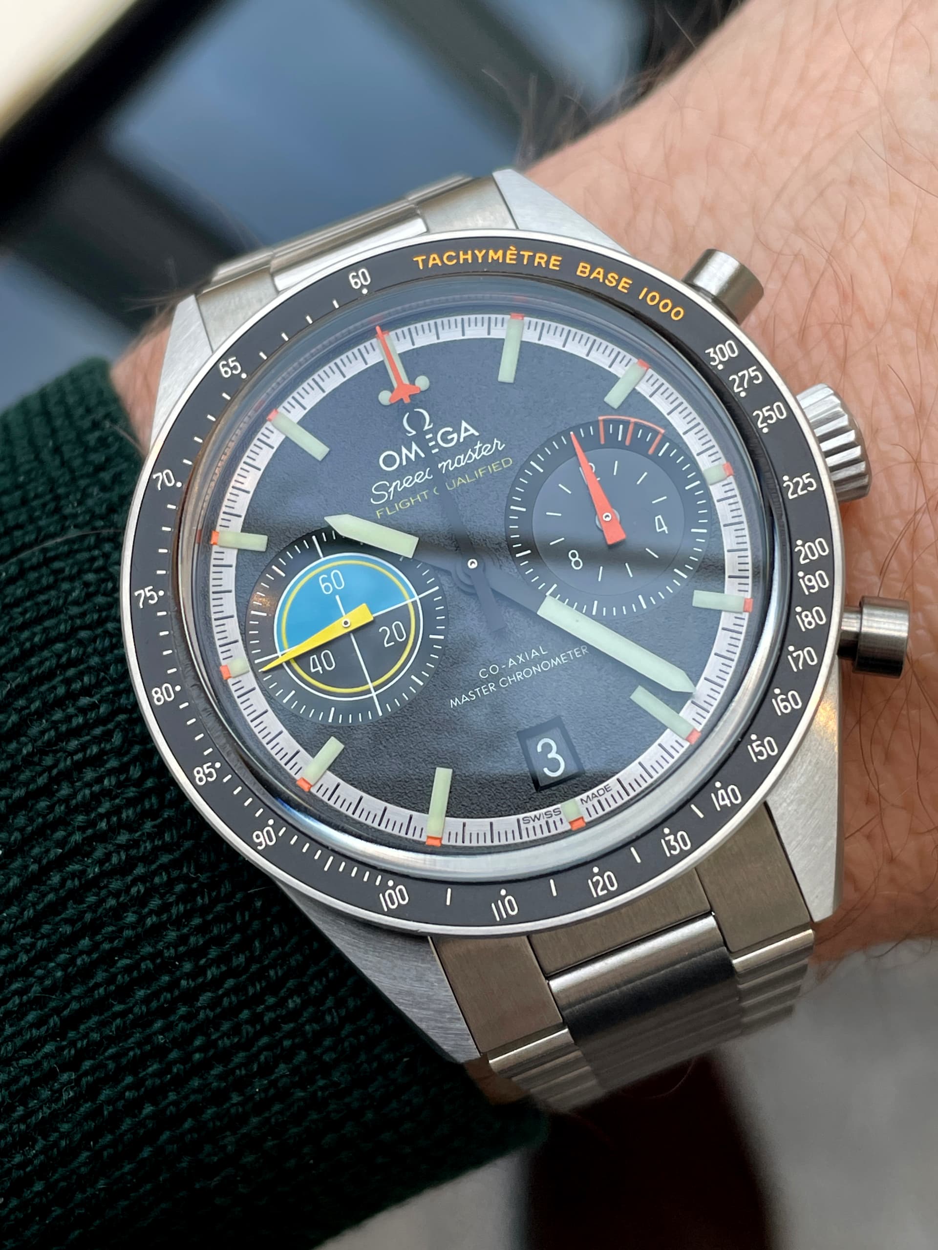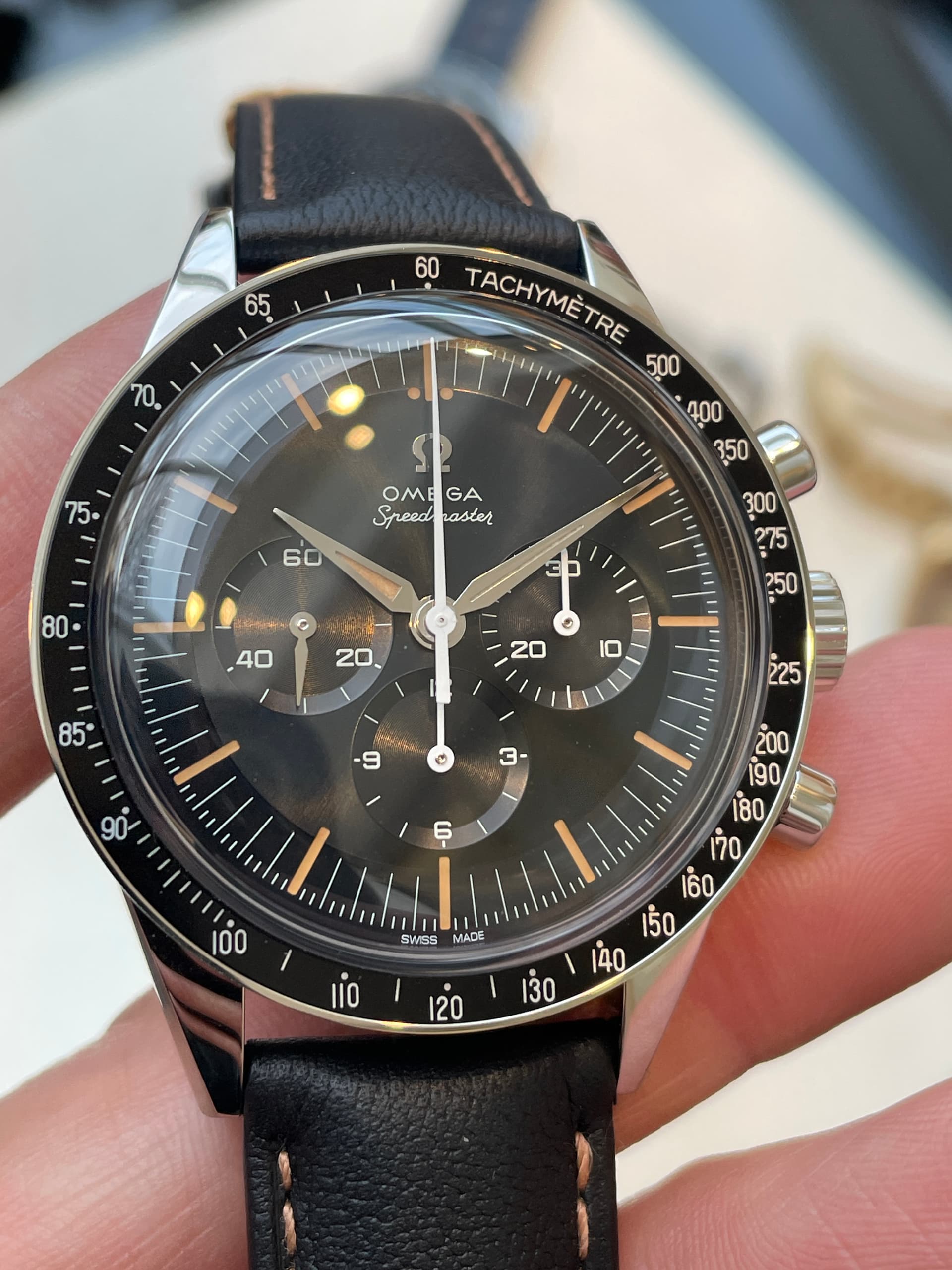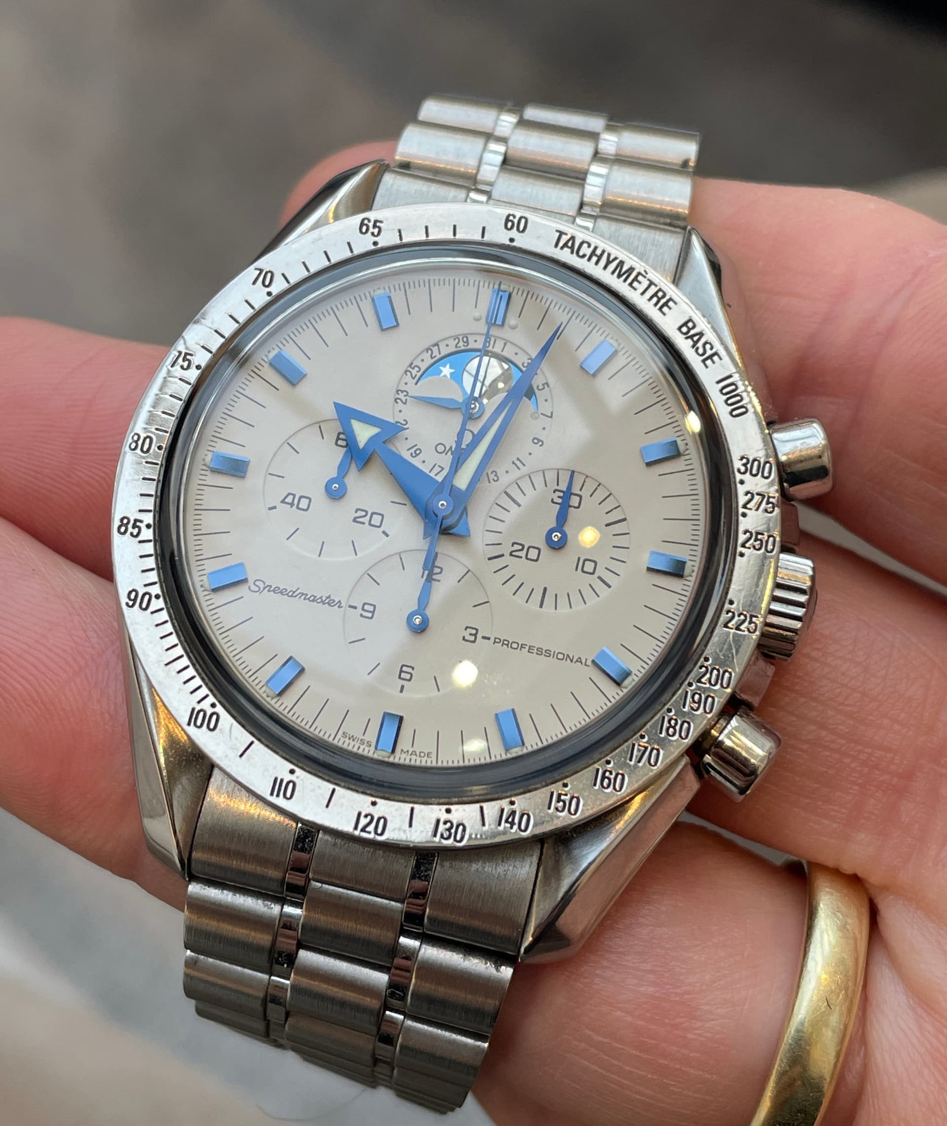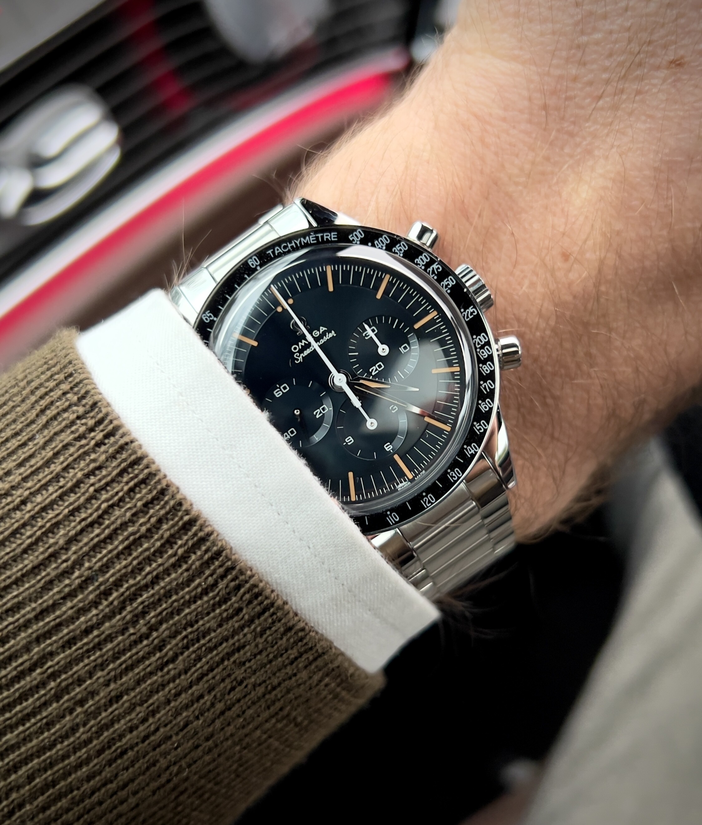 Waaronder de nieuwe FOIS, die goed loopt in de verkoop. Ik heb meteen het nieuwe gebolde saffierglas vergeleken met de klassieke hesalite van een 3861 Moonwatch. De lichtwerking en de vervorming leken enorm veel op elkaar (als je de glimmende wijzers van de FOIS even negeert). Ik ben benieuwd of Omega dit breder gaat uitrollen.