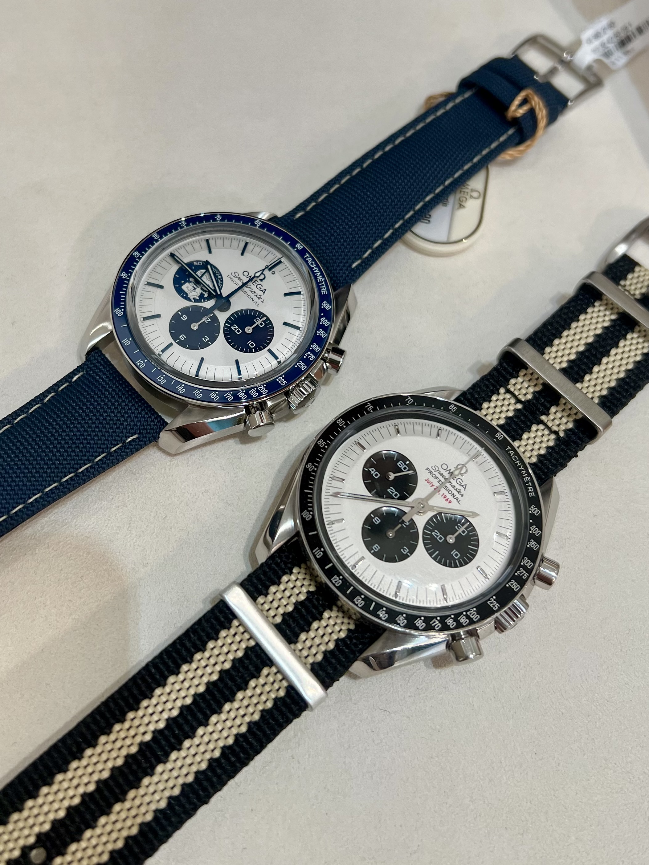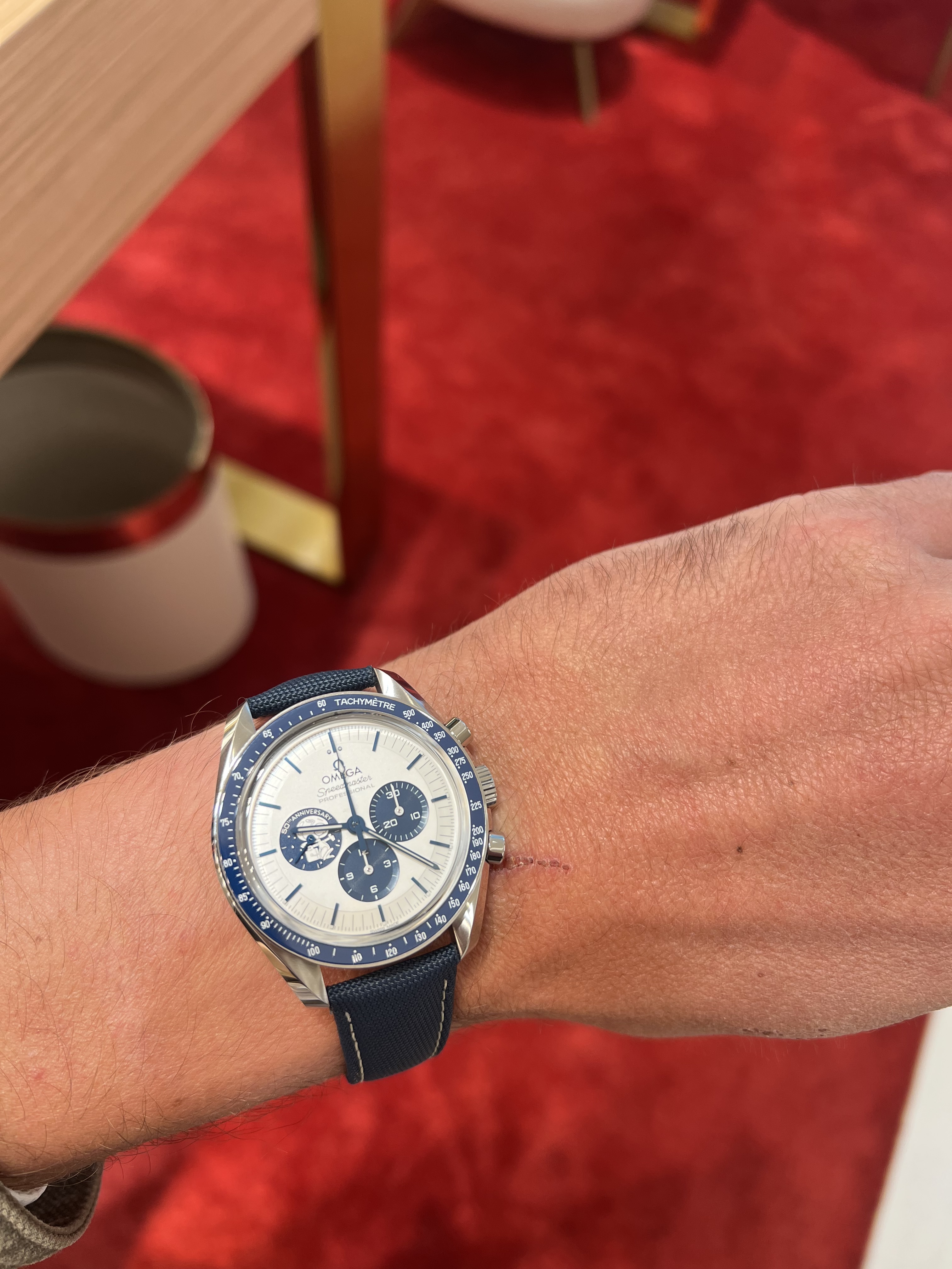 Vandaag een bezoek gebracht aan de Omega Boutique in A’dam. Via het forum vernomen dat ze een Silver Snoopy in de winkel hadden liggen. Het horloge wat ik al een tijd aan mijn collectie zou willen toevoegen, echter alleen gezien en nog nooit omgehad. Het horloge was nog aanwezig en ik kreeg alle tijd om het te bekijken en te passen. Wat een gaaf horloge is het, jammer dat het horloge momenteel niet te koop is. Ben erg benieuwd wat er dit jaar nog gaat gebeuren omtrent het 55-jarig jubileum. Zou toch stiekem hopen dat de Silver Snoopy nog wat langer in productie blijft, zodat ik nog een kans maak. Personeel in de Boutique was erg vriendelijk en nam alle tijd. Foto met de Snoopy naast mijn Apollo 11.