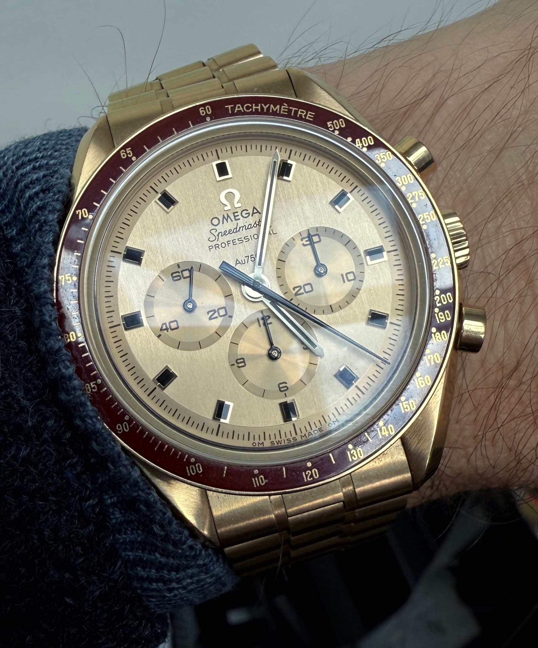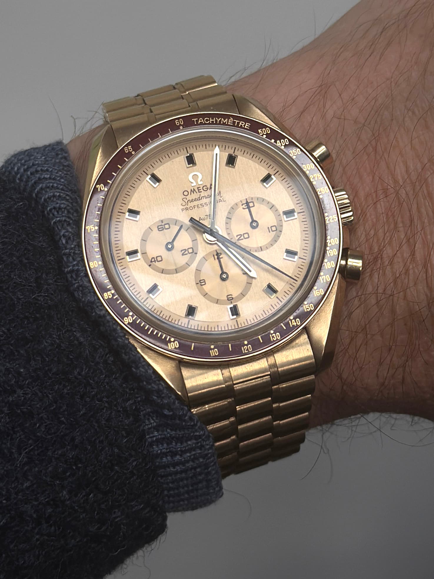 Sjiel vond de Apollo8 ook prima te dragen hoor. Mag dan wel een 44 zijn, maar Speedmasters dragen kleiner dan de specs.