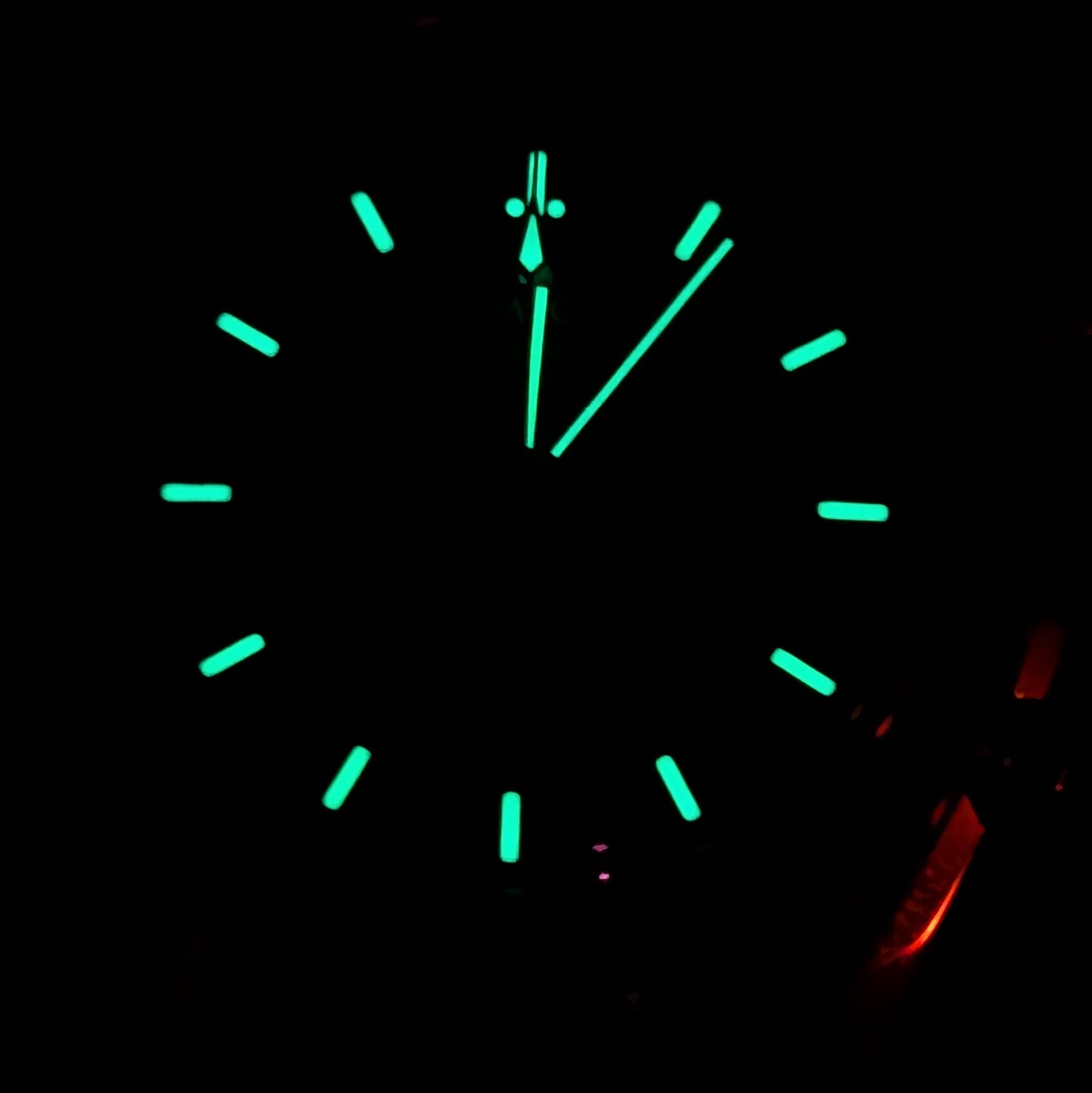 Superluminova gloeit groen na, maar is het niet blauw als je het UV licht erop schijnt? Het is al geleden dat ik dit heb gedaan haha. Bij vintage kan je zien of het echt tritium is als het groen opgloeit.