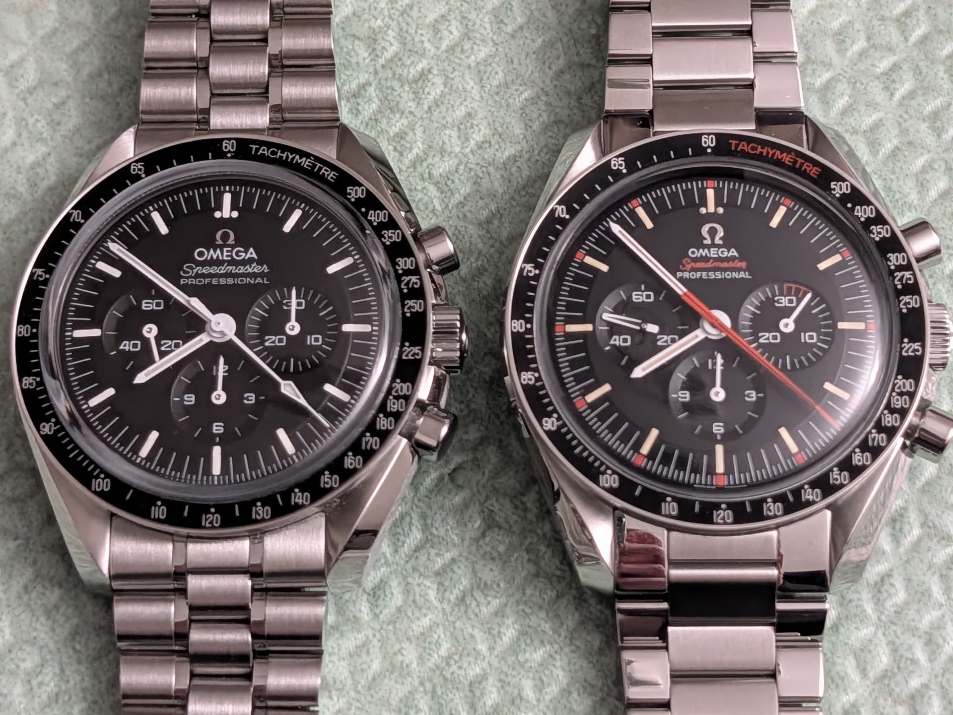 Edit, even een foto opgezocht met de Speedy’s die ik heb maar op beide zijn de cijfers van de subdials allen dezelfde grootte. Los van de plaatsing verschillen.