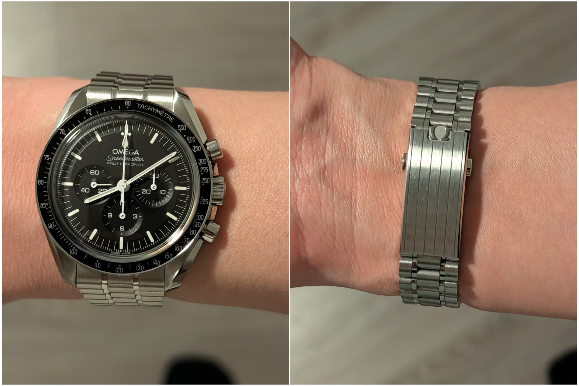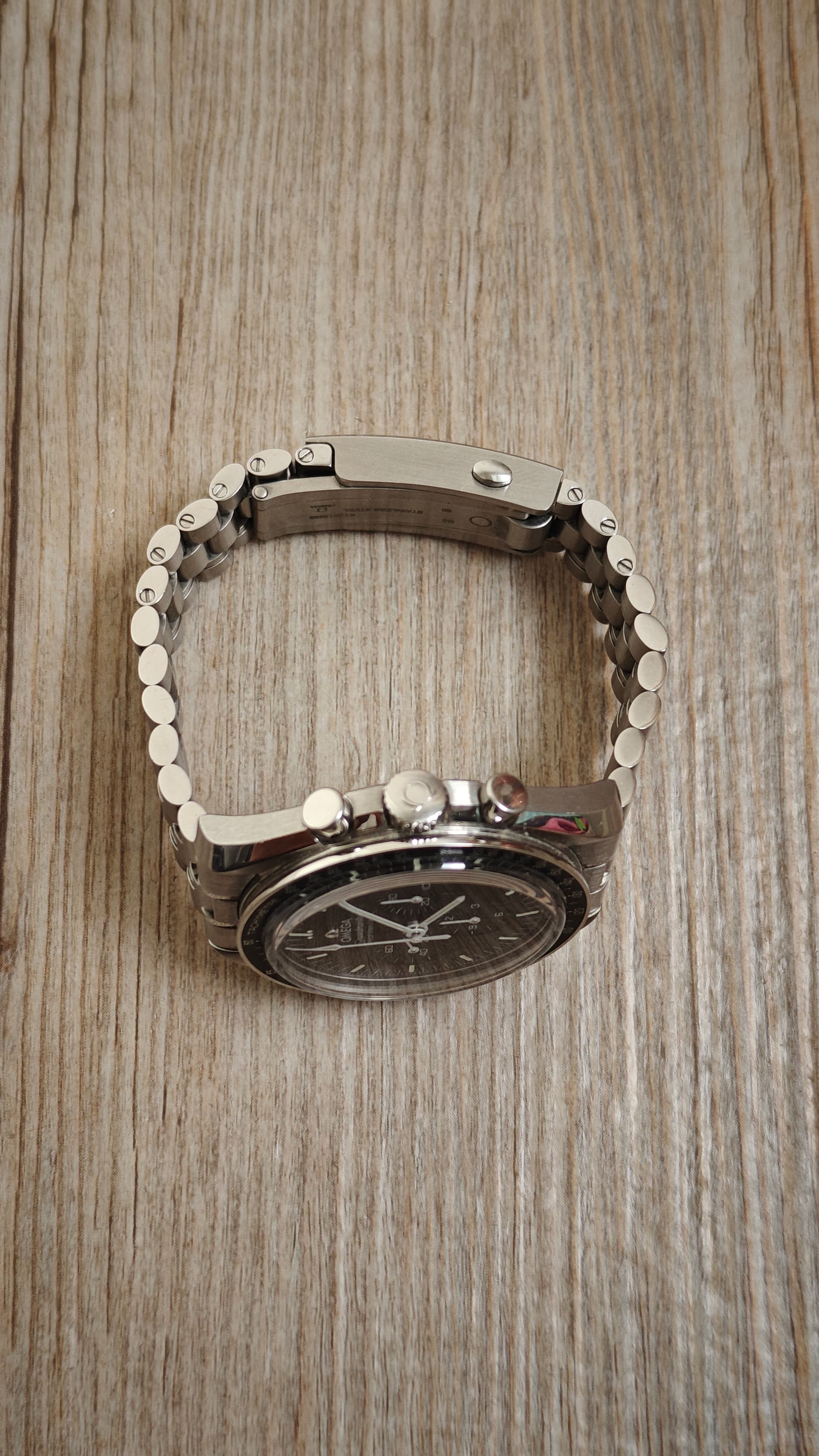 Voor mij ligt het aan de sluiting. Als je in de sluiting meerdere schakels kwijt kan, moet je dit ook in acht nemen met het inkorten. Dat is vooral bij vintage meer het geval natuurlijk, dan die paar millimeter snelverstelling van de huidige Speedmaster band.