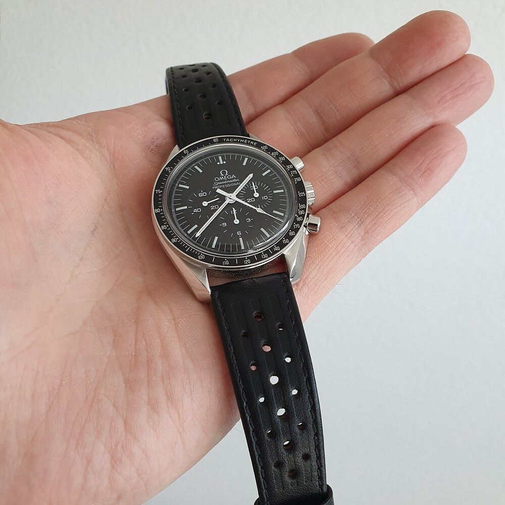 Als alternatief heb ik een rubberen band met vouwsluiting van Watchgecko. Dit is een lekkere soepele band met een goede vouwsluiting die qua uiterlijk lijkt op die van Omega.