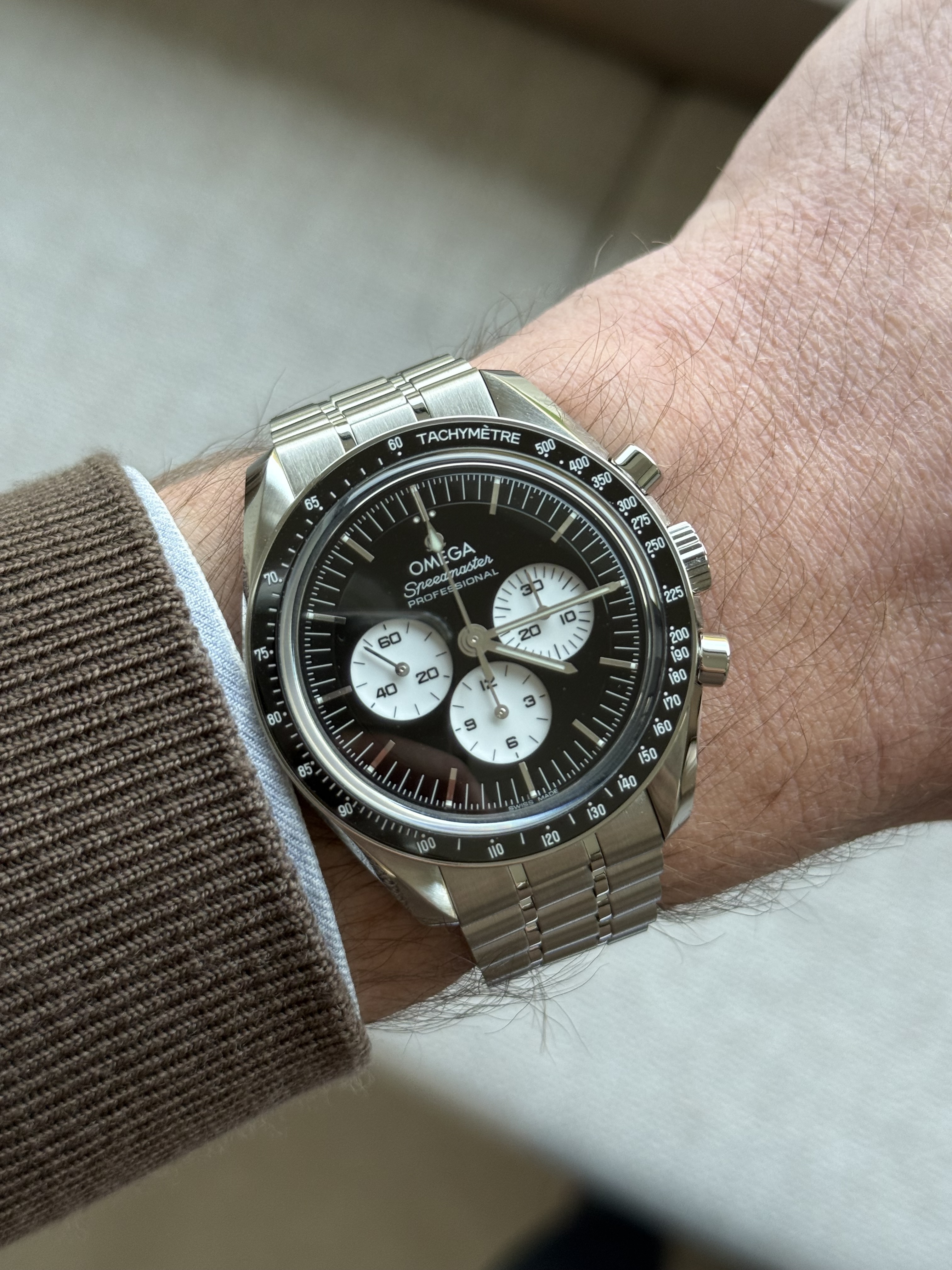 De “standaard” Speedmaster 3861 heb ik ook even gehad, die is veel beter afleesbaar. Maar ik vond die al heel snel saai, minder premium en iets te groot (daarom vrij snel weg gedaan)