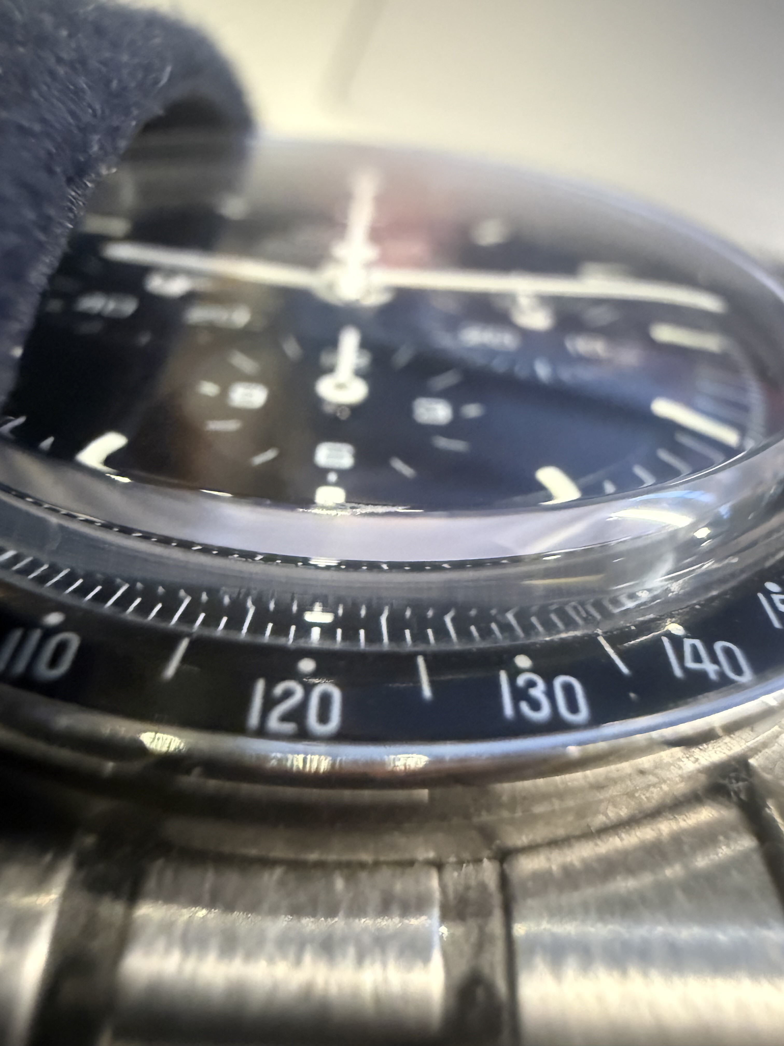 De Speedy voelt luxer, specialer, de wijzerplaat is echt uniek mooi. Absoluut heel erg glanzend zwart, maar zo diep, dat de rest eruit springt, de subdials zijn kraakhelder en goed afleesbaar. De wijzers en uurmarkeringen zijn heel goed helder en afleesbaar. Echter, in een bepaalde hoek en bepaald licht vallen de markingen (doordat deze gepolijst zijn) als zwart vlak weg tegen de wijzerplaat, niet storend, wel uniek.